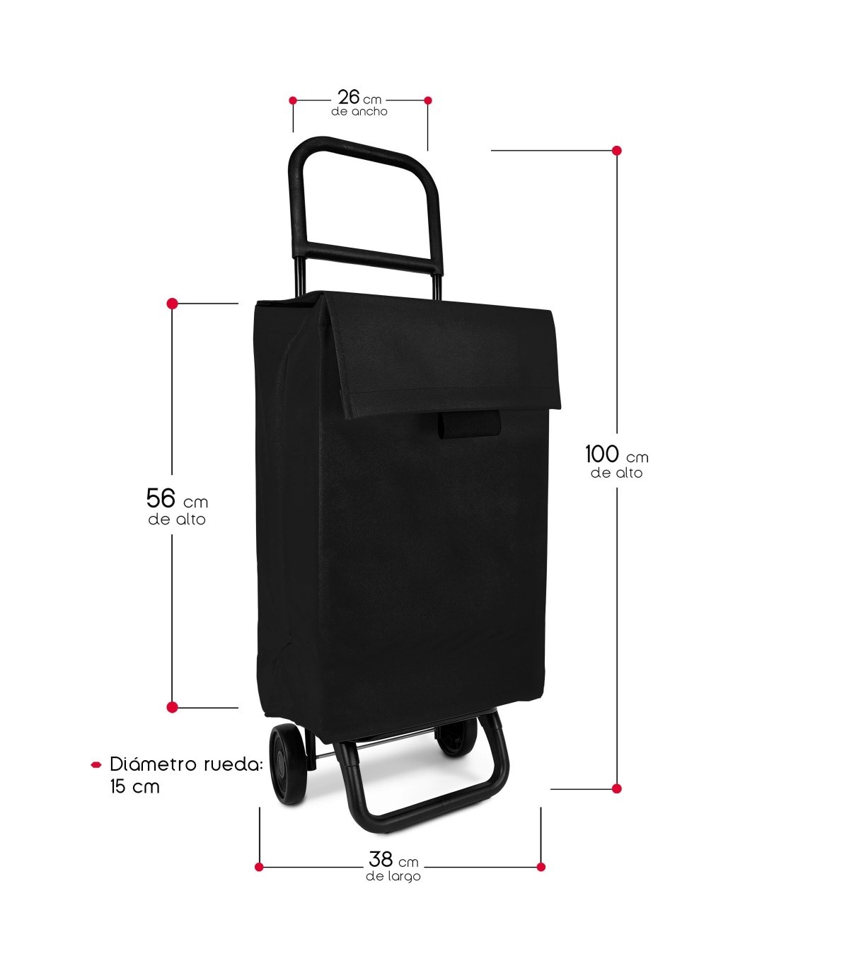 Carro de Compra, Plegable, Poliéster, 22x38x100 cm, 2 Ruedas, 66L (Negro)