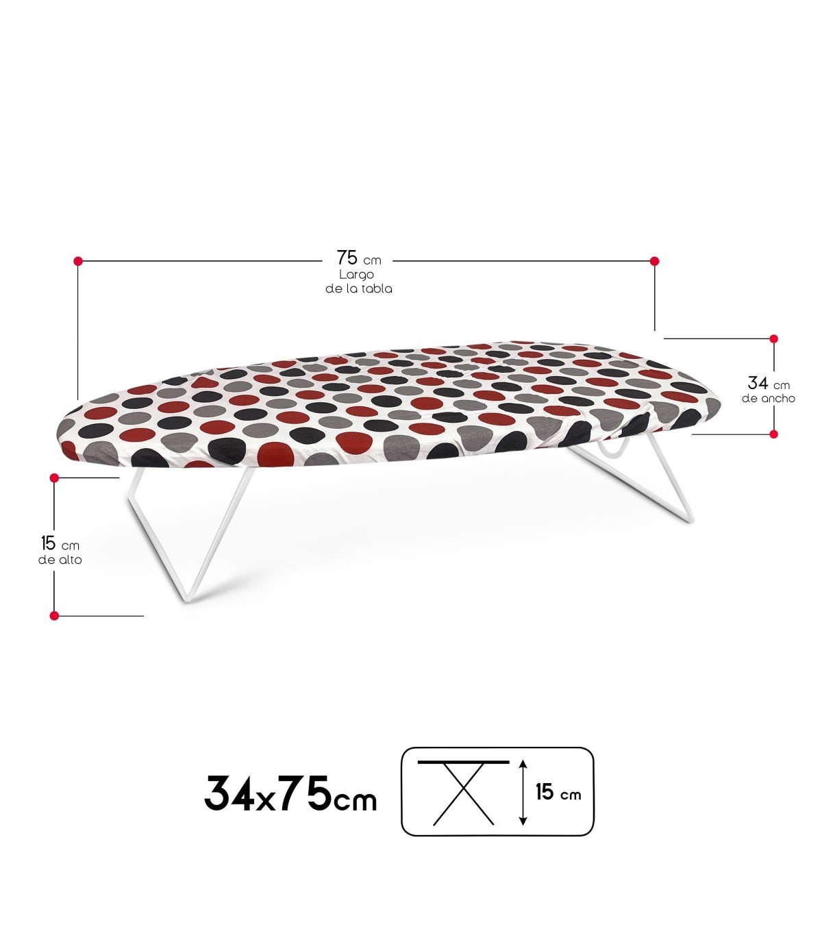 3. ? MEDIDA 75 X 34 CM: Con unas dimensiones de 75 x 34 cm, nuestra tabla de planchar ofrece un amplio espacio para planchar una variedad de prendas. Desde camisas hasta pantalones, esta tabla de planchar es versátil y funcional para todas tus necesidades de planchado.