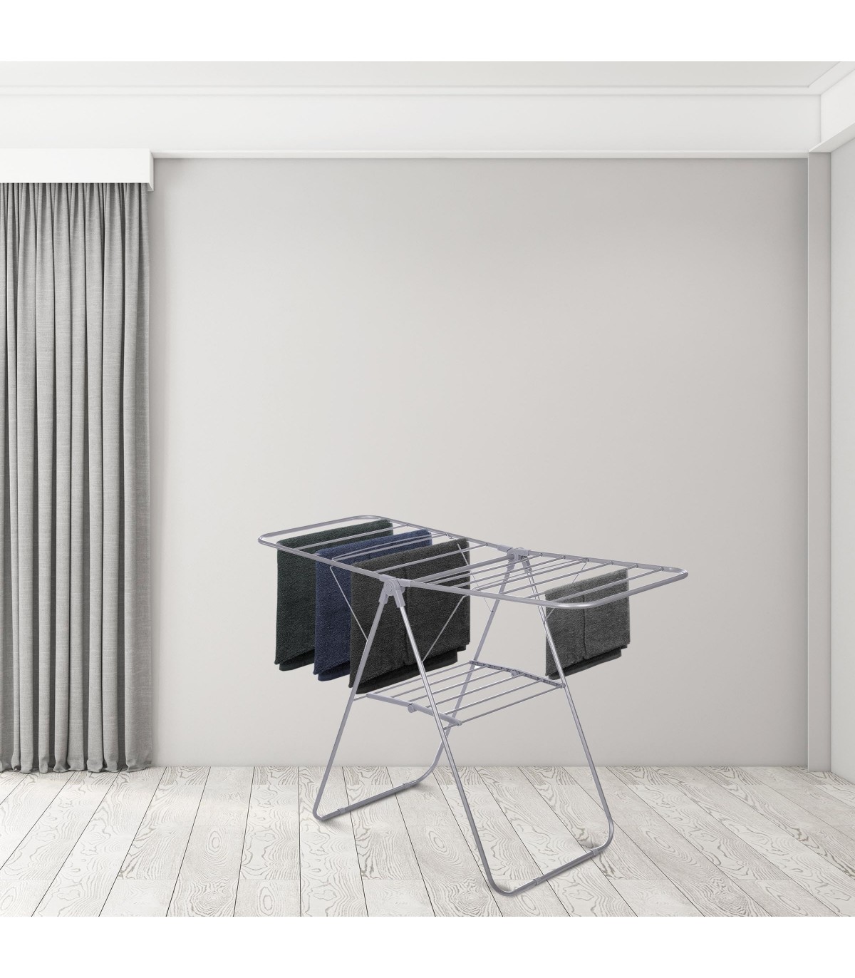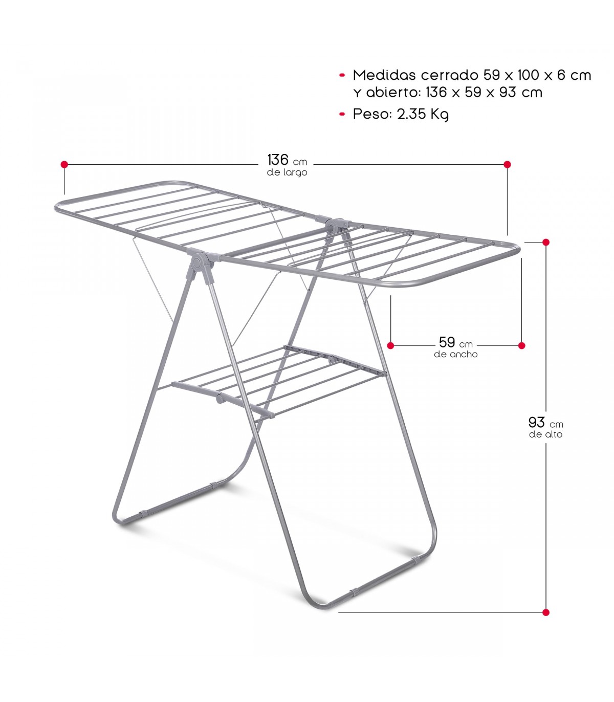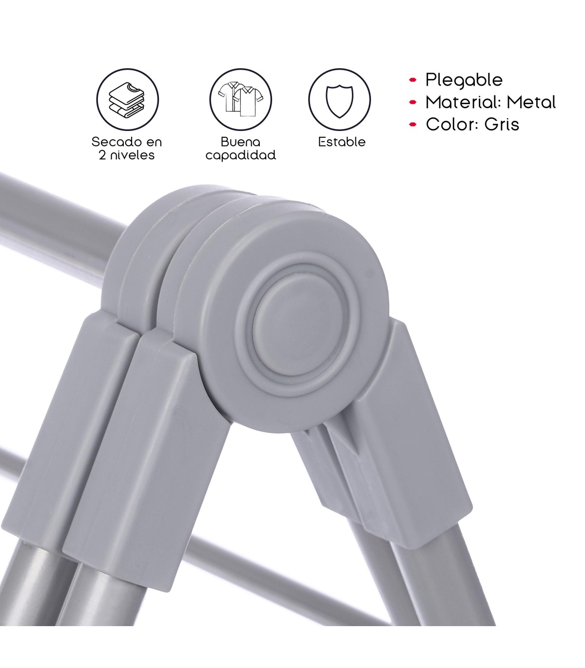 GRAN CAPACIDAD DE SECADO: Sus 2 niveles y múltiples barras permiten colgar varias prendas a la vez, optimizando el tiempo de secado y evitando arrugas.