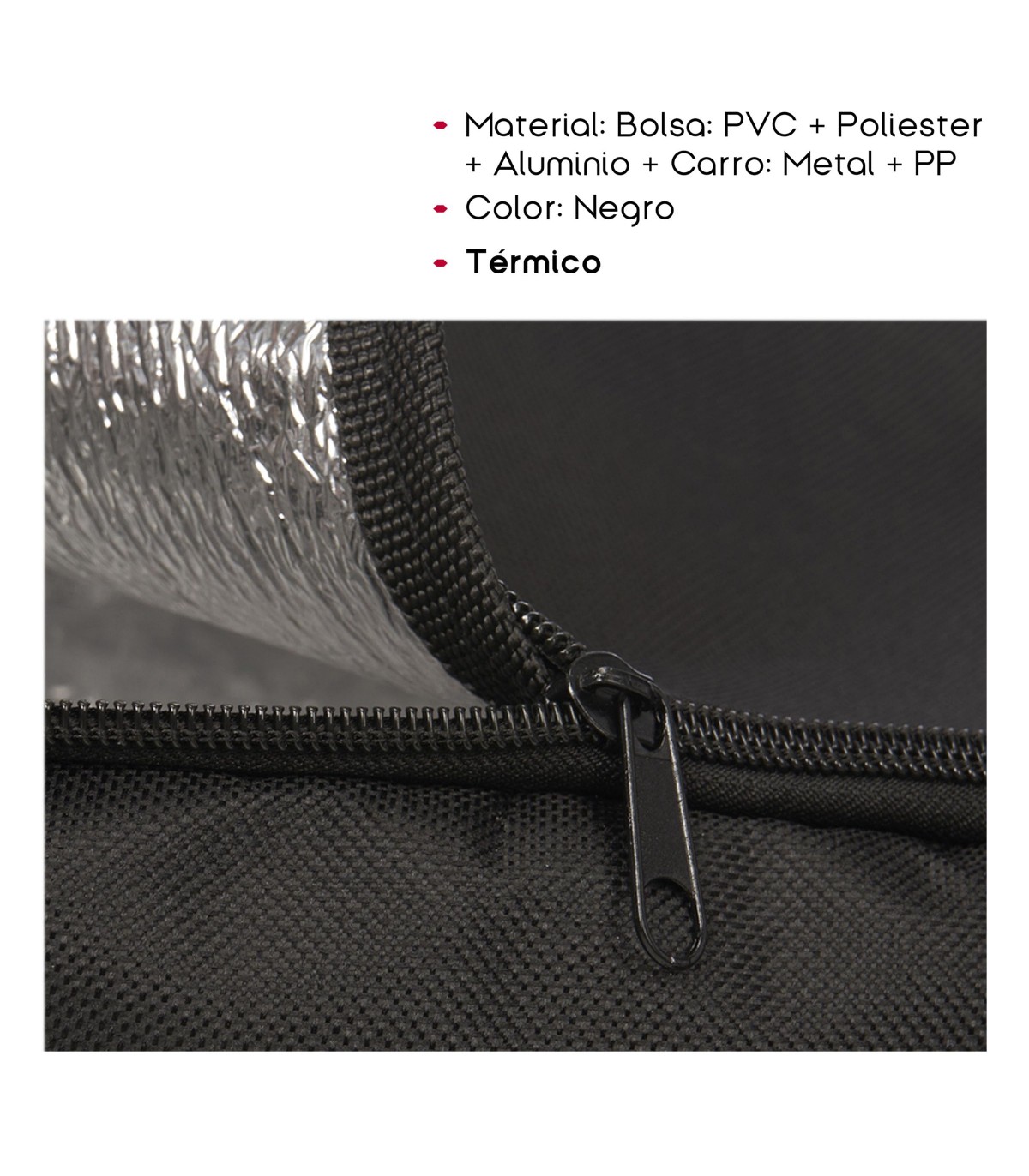 BOLSA TÉRMICA PARA MAYOR CONSERVACIÓN – Fabricada con PVC, poliéster y aluminio, ayuda a mantener la temperatura de los alimentos, ideal para productos frescos o congelados.