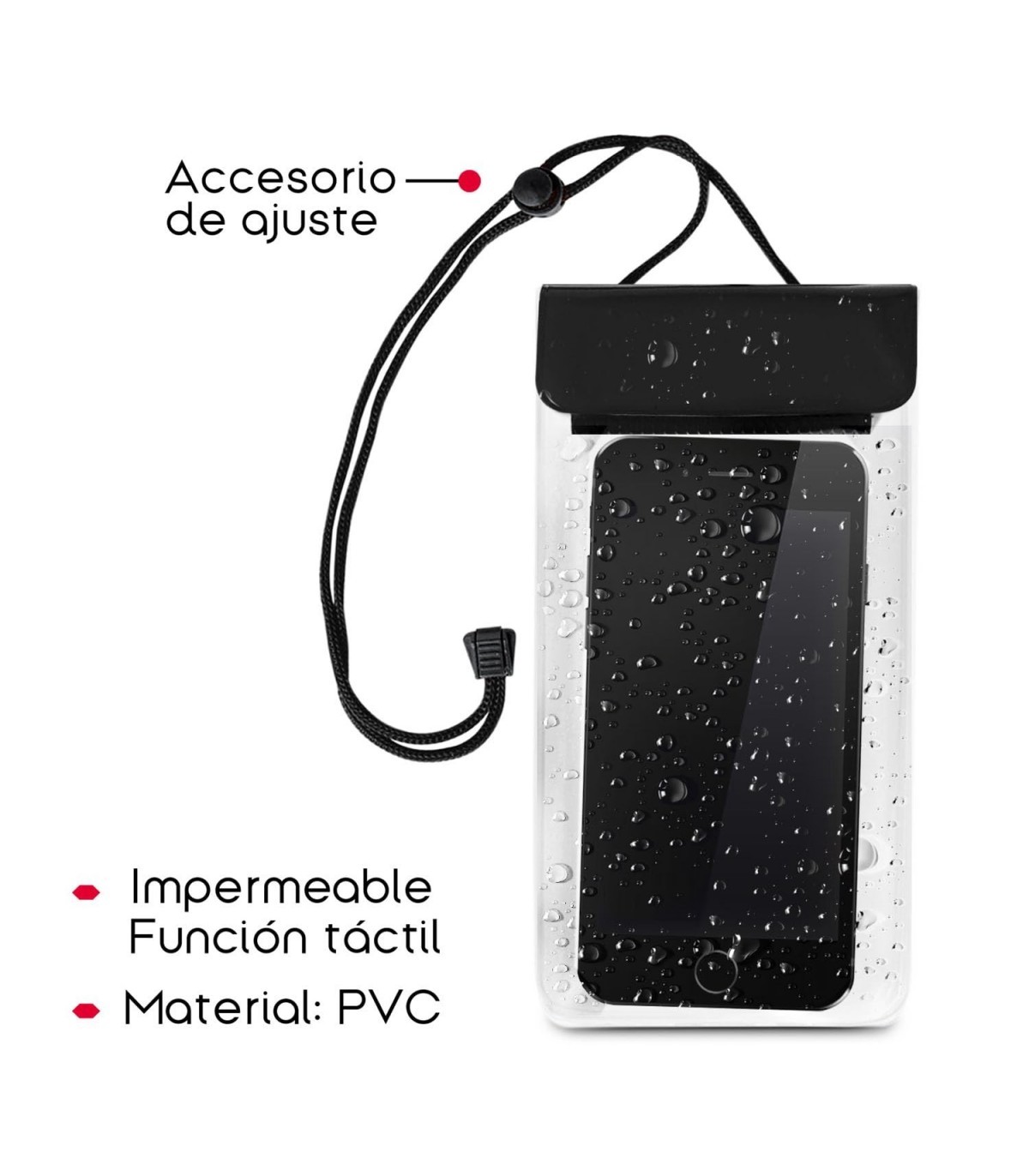 Mantén tus dispositivos móviles seguros y protegidos en todo momento con nuestra Funda Impermeable para Móvil. Este pack incluye dos unidades de fundas que te brindarán la tranquilidad de saber que tus dispositivos están a salvo de la lluvia, el polvo, la nieve y la humedad.