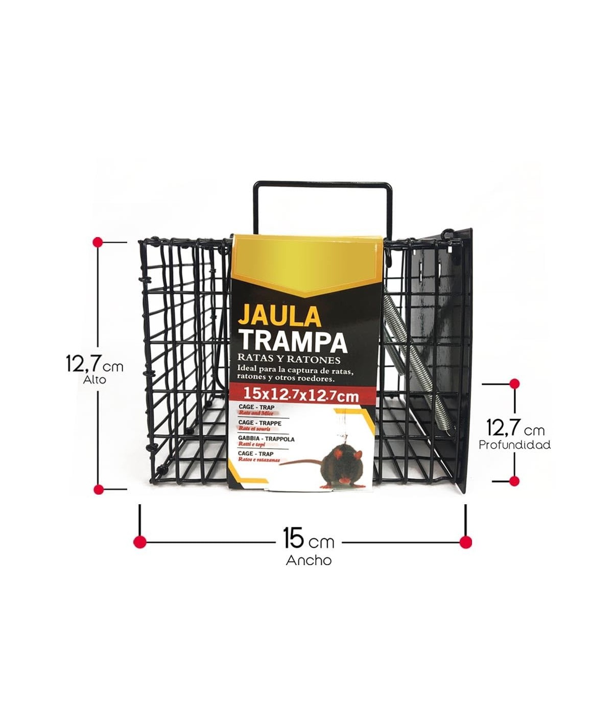 Su diseño de malla de alambre resistente y de alta calidad permite una ventilación adecuada, evitando la asfixia del animal atrapado. Además, la jaula trampa está equipada con un mecanismo de puerta de cierre rápido y seguro, que se activa al entrar el roedor y evita su escape.