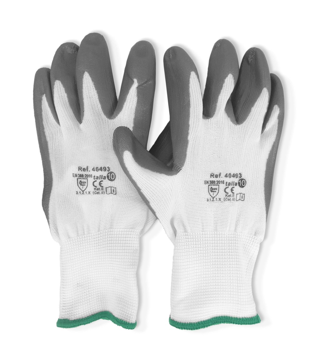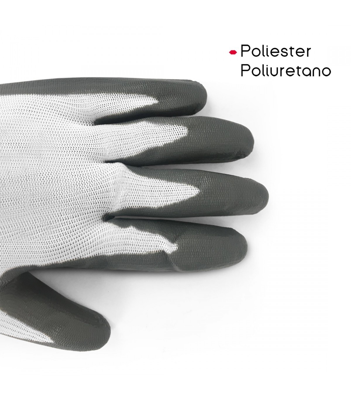 Los Guantes de Protección Multiusos de Poliéster y Poliuretano son una solución confiable y versátil diseñada para brindarte la máxima seguridad y comodidad en todas tus actividades. Con materiales de alta calidad y un cuidadoso diseño, estos guantes han sido creados pensando en tu protección y rendimiento en diversas tareas. Ya sea que estés trabajando en proyectos de bricolaje, cuidando tu jardín, realizando labores en el garaje o cualquier otra actividad en la que tus manos necesiten protección, nuestros guantes multiusos se adaptarán perfectamente. Desde pequeñas tareas en casa hasta trabajos industriales, estos guantes están diseñados para enfrentar cualquier desafío. Entendemos la importancia de un ajuste adecuado para que puedas trabajar cómodamente sin restricciones. Por eso, ofrecemos cuatro tallas diferentes para adaptarse a todas las manos. El poliéster y el poliuretano, utilizados en su confección, proporcionan una excelente flexibilidad, lo que garantiza que los guantes se ajusten perfectamente y te brinden una sensación de libertad en tus movimientos. Nuestra principal prioridad es proteger tus manos de cualquier riesgo potencial. Los guantes están especialmente diseñados para ofrecer una protección superior contra cortes, abrasiones y pinchazos, manteniendo tus manos a salvo en todo momento. A pesar de su robusta construcción, no comprometen la destreza