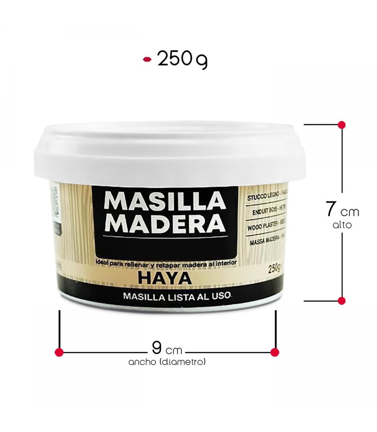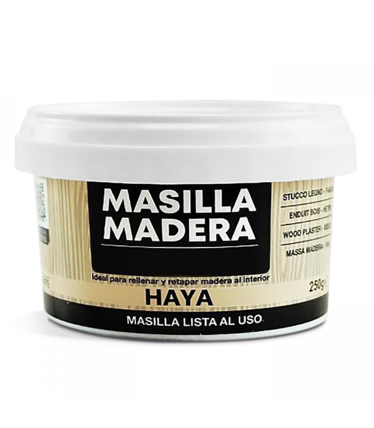 Transforma tus proyectos de carpintería con nuestra Masilla en Pasta para Madera. Esta tarrina de 250g de masilla te ofrece una solución confiable y versátil para rellenar madera al interior, permitiéndote lograr acabados profesionales y de alta calidad en cada trabajo.