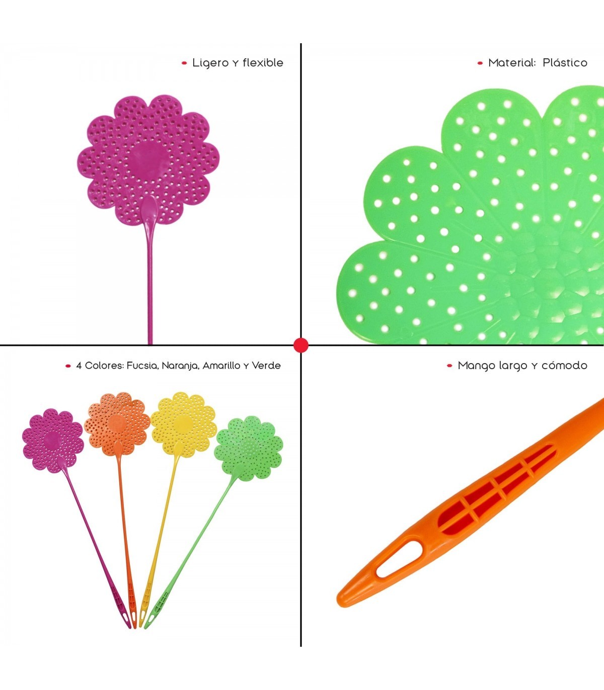 Pack de 4 Matamoscas, Resistente y Flexible, Plástico
