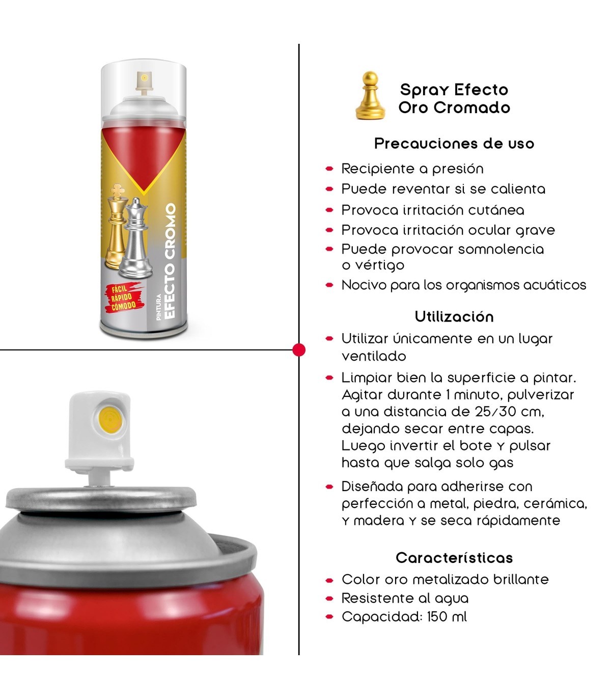 Spray Pintura Efecto Cromo, Metalizado, 150 ml, 5x17.5 cm, Oro