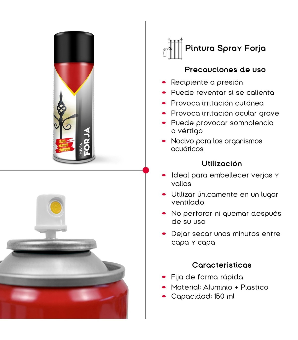 ? ACABADO RUGOSO: Con su fórmula especial, este spray proporciona un acabado rugoso que imita la textura del hierro forjado, agregando un toque de autenticidad y estilo a tus proyectos de decoración.