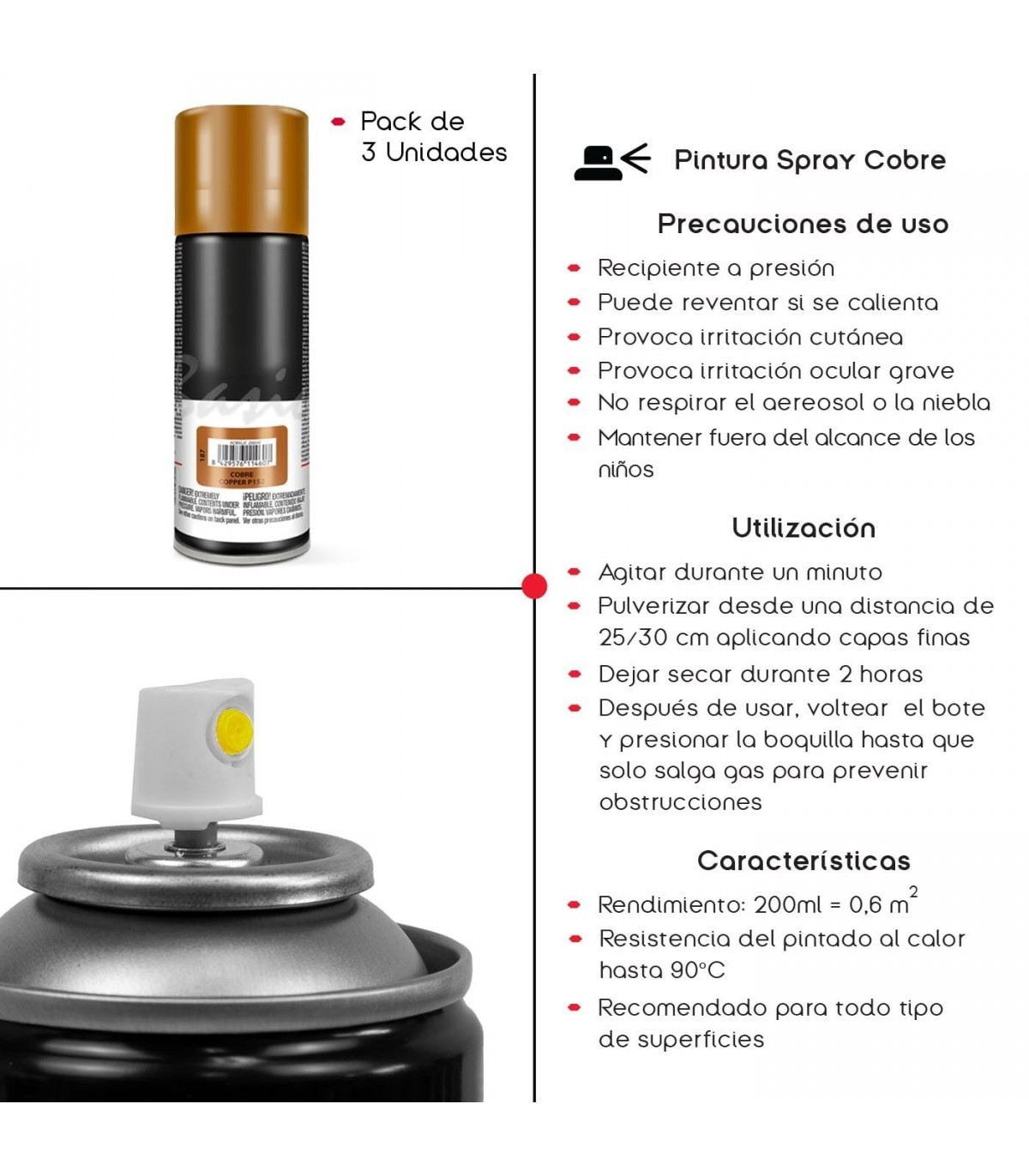 Pack de 3 Spray Purpurina, 200 ml, 5x17.5 cm (Cobre)