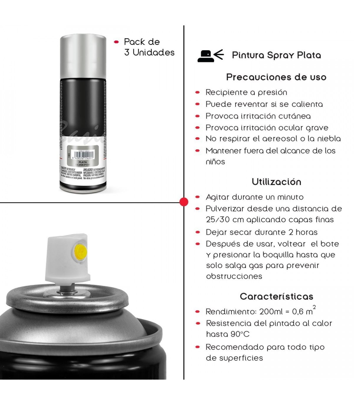 ? VARIEDAD DE COLORES: Disponible en tonos oro, plata y cobre, este spray te permite elegir el color que mejor se adapte a tu estilo y preferencias, añadiendo un brillo metálico único a tus creaciones.