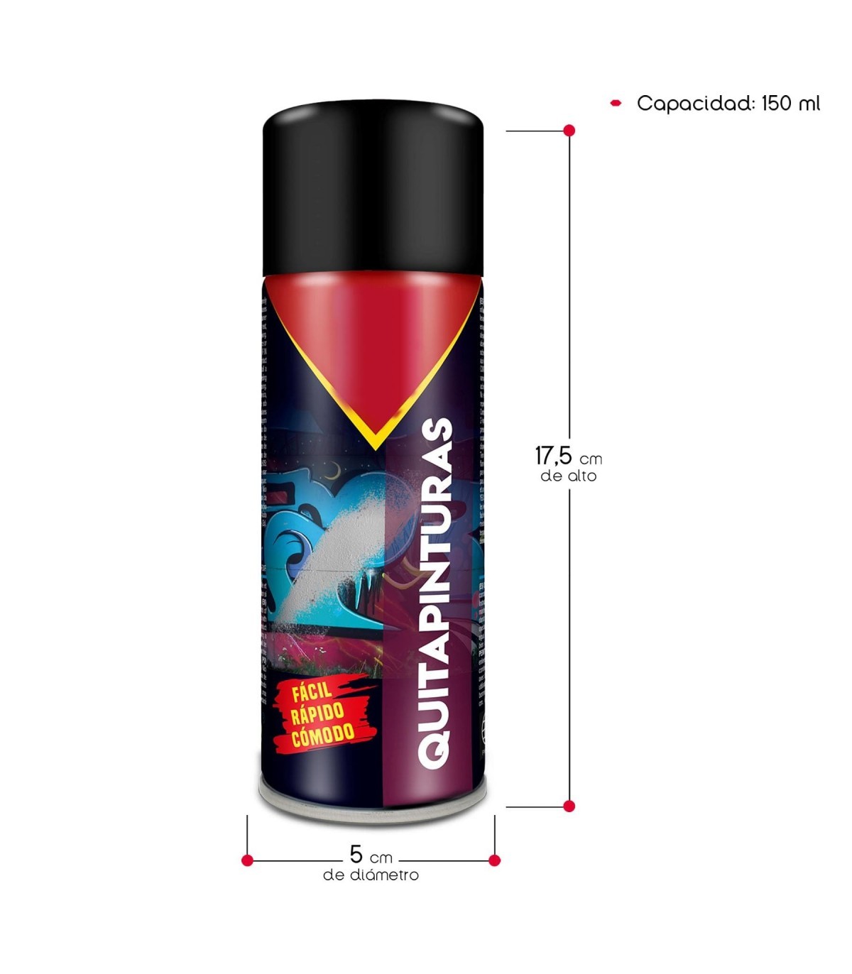 ? QUITAGRAFITIS: Además de eliminar pintura, este producto es especialmente efectivo para eliminar grafitis, ayudando a restaurar la apariencia original de las superficies vandalizadas.