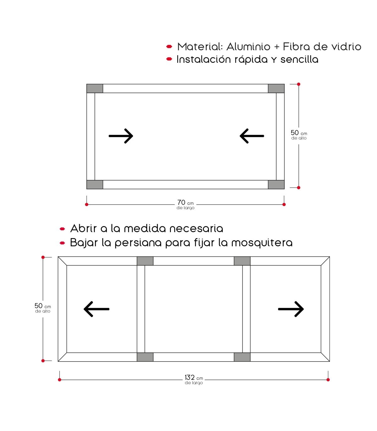 ? EXTENSIBLE Y ADAPTABLE: Disponible en dos tamaños extensibles (70 a 132 cm y 100 a 192 cm de longitud), esta mosquitera se ajusta perfectamente a diferentes tamaños de ventanas, ofreciendo versatilidad y comodidad.