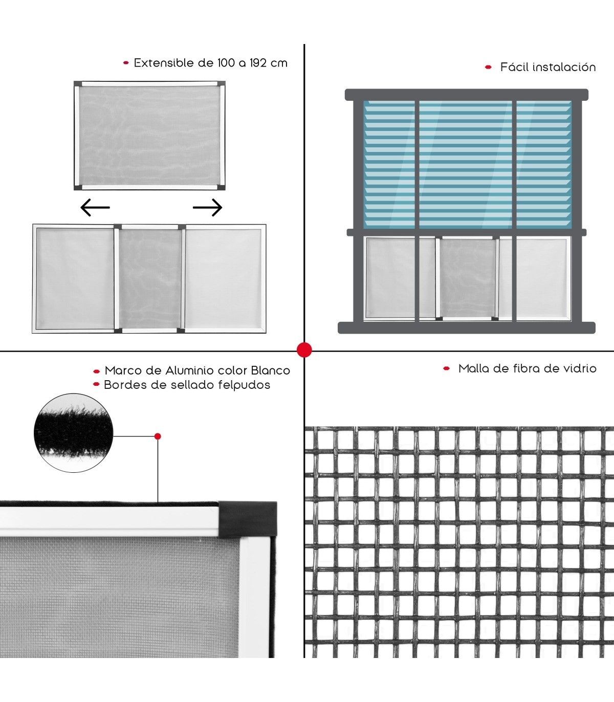 ?DISFRUTA DE UN HOGAR LIBRE DE INSECTOS La Mosquitera Extensible para Ventanas de Tienda Eurasia es la solución ideal para mantener tu hogar libre de insectos mientras disfrutas de la ventilación natural. Con su fácil instalación, materiales de alta calidad y diseño elegante, esta mosquitera es una adición imprescindible para cualquier hogar. Asegura un ambiente tranquilo y cómodo con la protección efectiva y duradera que solo Tienda Eurasia puede ofrecer. ¡Elige la mosquitera que mejor se adapte a tus necesidades y disfruta de la tranquilidad que mereces!