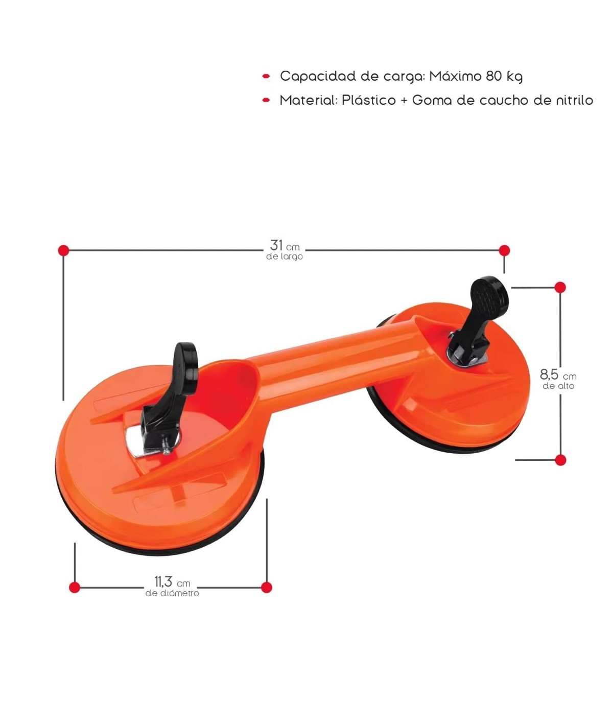 Ventosas para Cristal, Mango Antideslizante, Ø11.3 cm, Material Plástico (80 Kg)