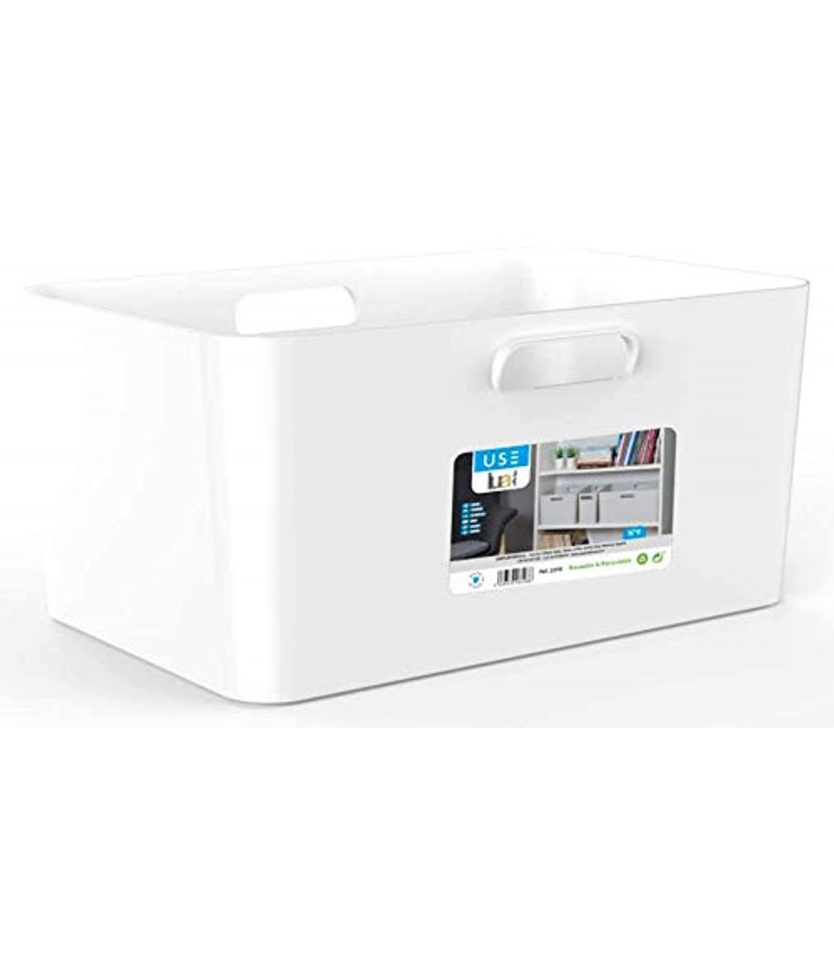 TIENDA EURASIA® Cajas de Almacenaje con Asas - Organizadores de Plástico Multiusos - Ideales para baño, cocina, salón, dormitorio (Opaco Blanco, 2 Cajas - 12,5 x 26 x 18 cm - 4,4 L)