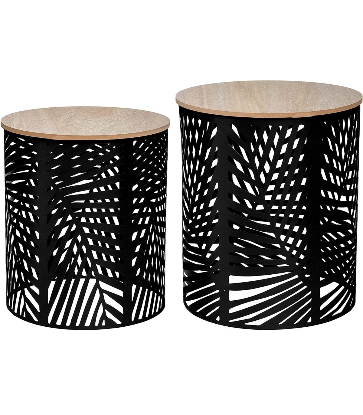 TIENDA EURASIA® Mesa Auxiliar Estilo Vintage - Juego de 2 Mesas Auxiliares de Centro - Estructura Metalica y Tapa de Madera.