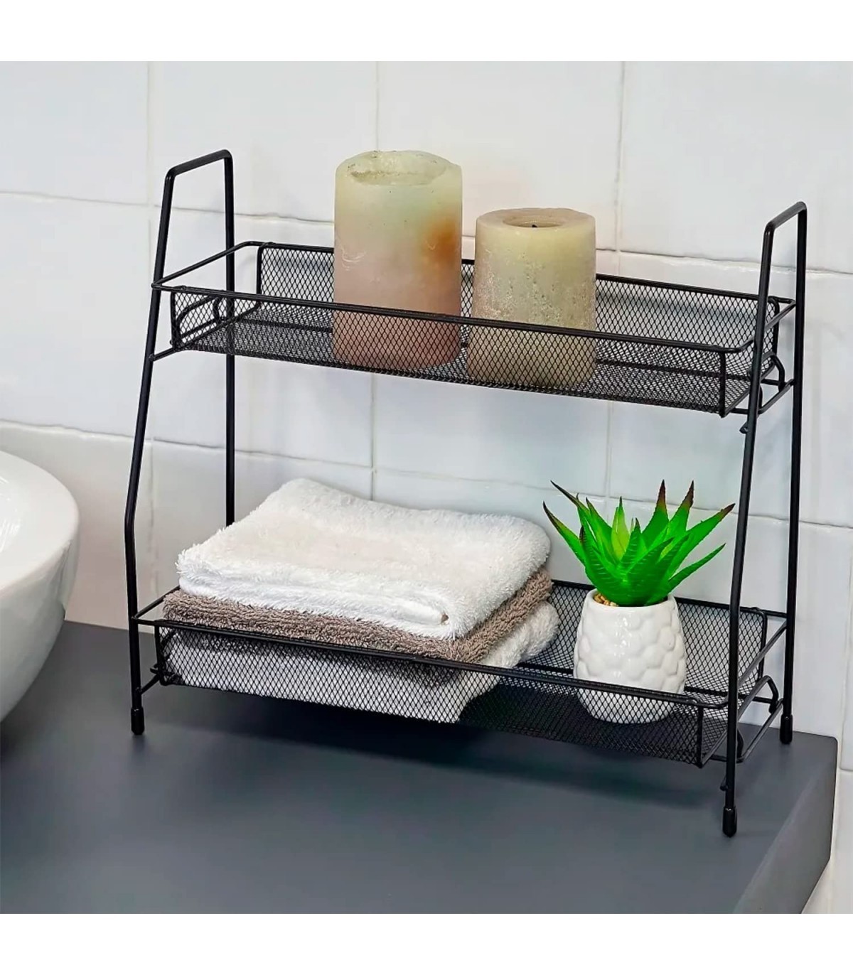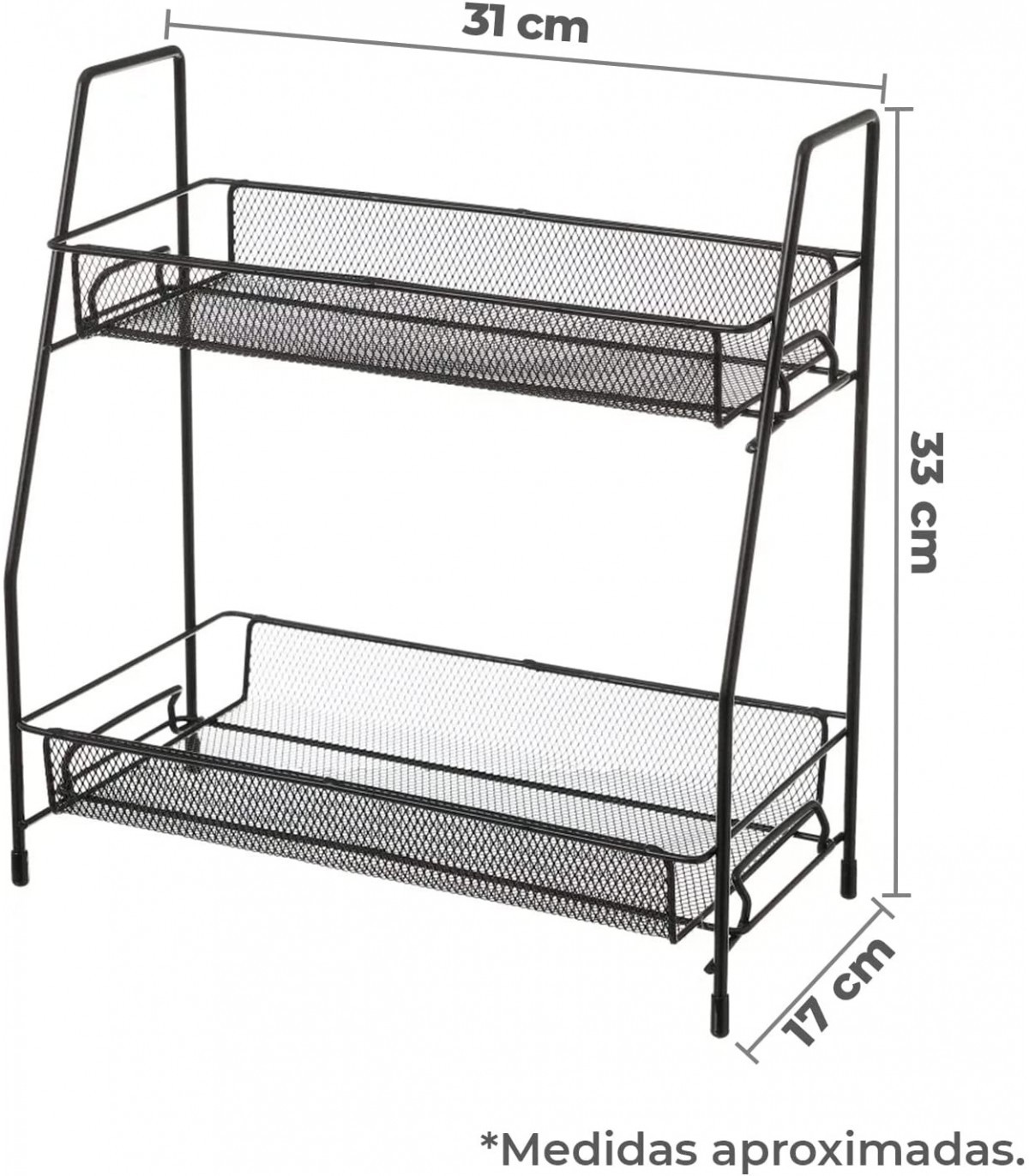 Estanteria Doble Cesta de Metal, 31x17x33 cm (Black)