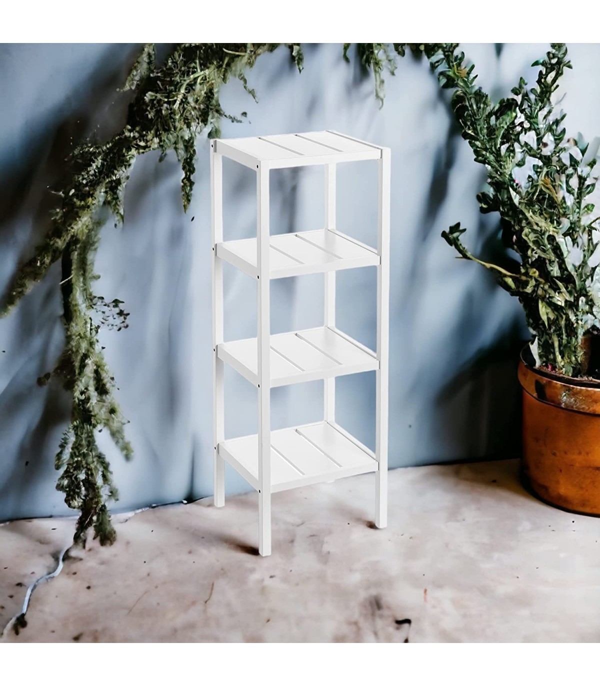 Disponible en dos opciones de altura, de tres y cuatro niveles, nuestra estantería es lo suficientemente espaciosa como para almacenar todo lo que necesitas en tu baño sin ocupar demasiado espacio. Además, su color blanco combina perfectamente con cualquier decoración de baño y hace que tu baño se vea más amplio y luminoso.