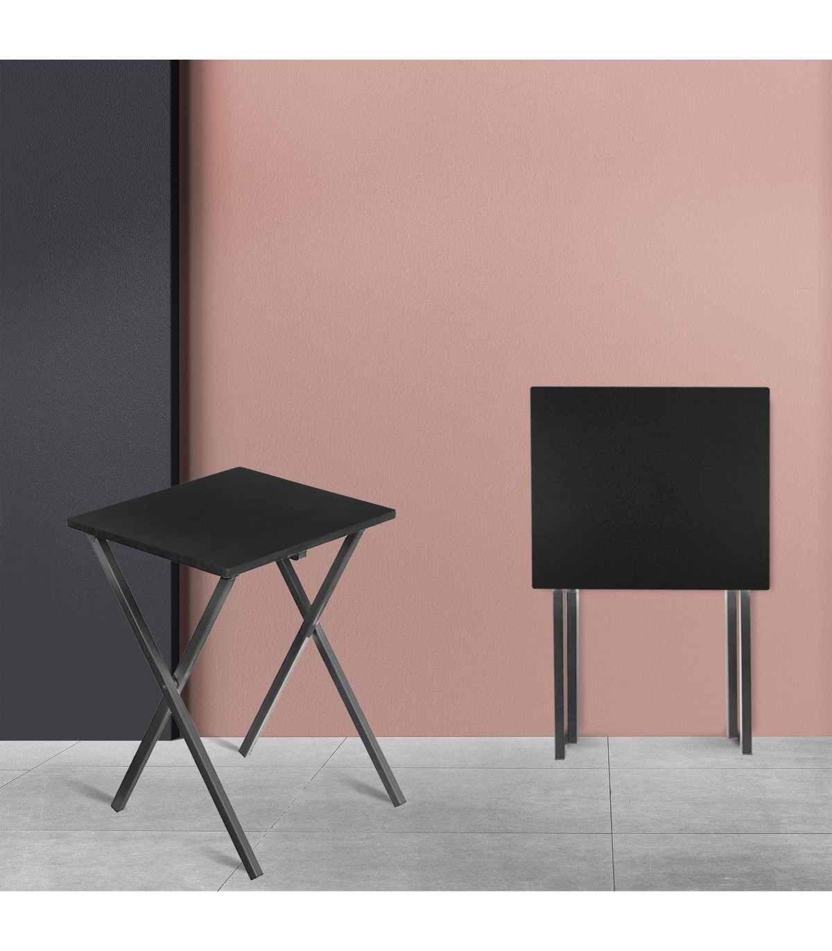 Mesa Auxiliar Plegable, 34 x 40 x 50cm, Madera y Metal (Negro)