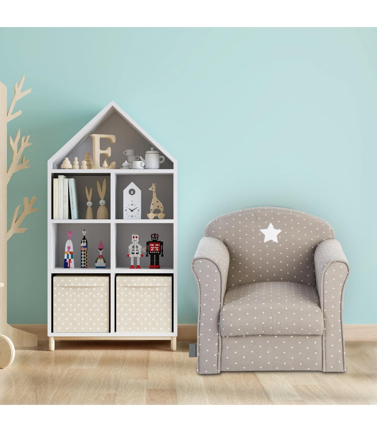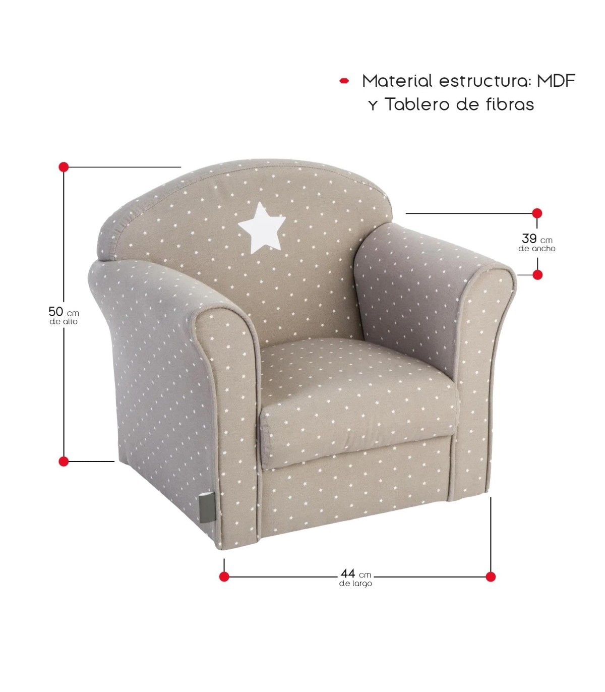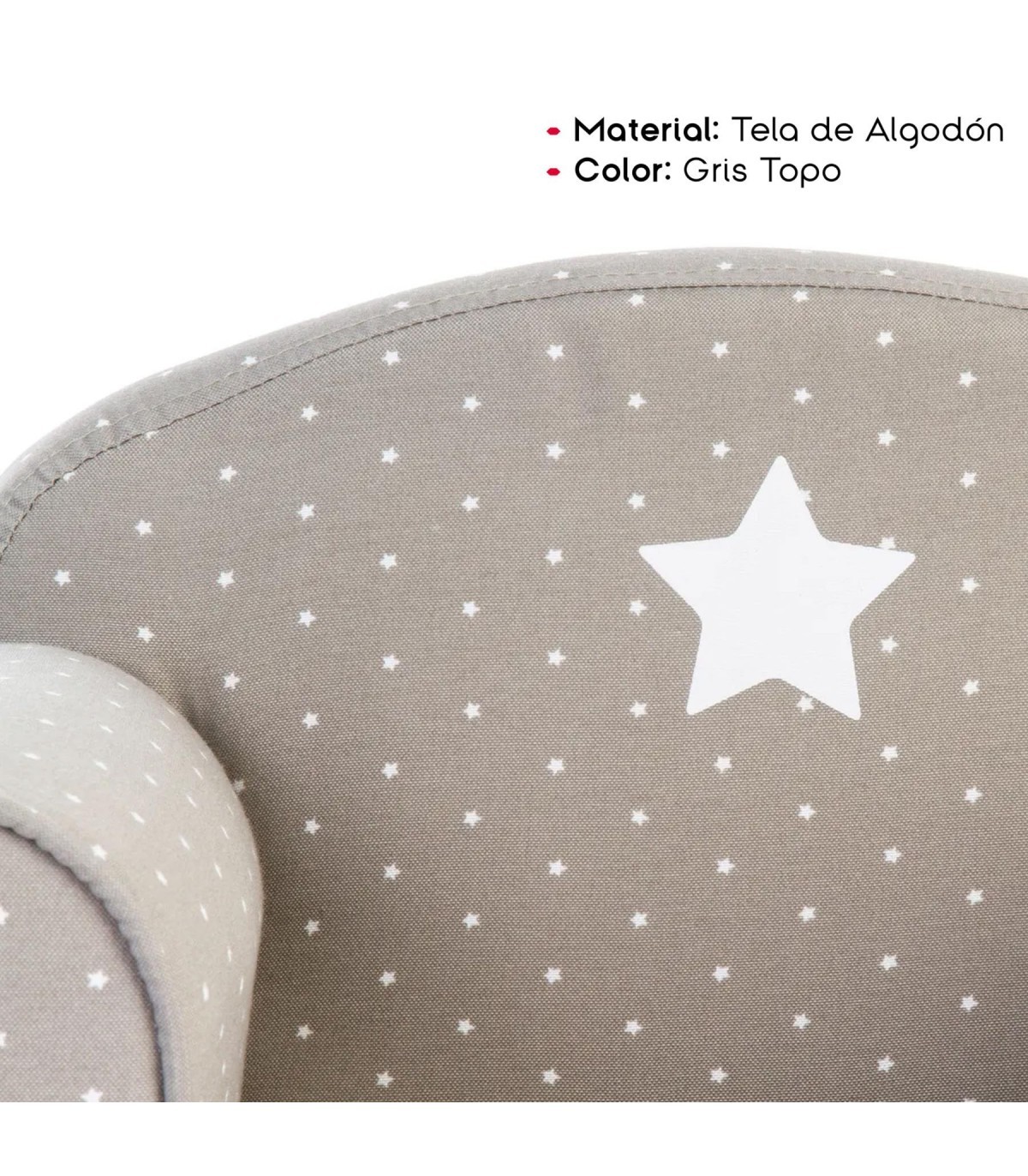 Sillon Infantil, Gris Topo, 44x39x50 cm, Tela de Algodón y MDF, Resistente y Acolchado