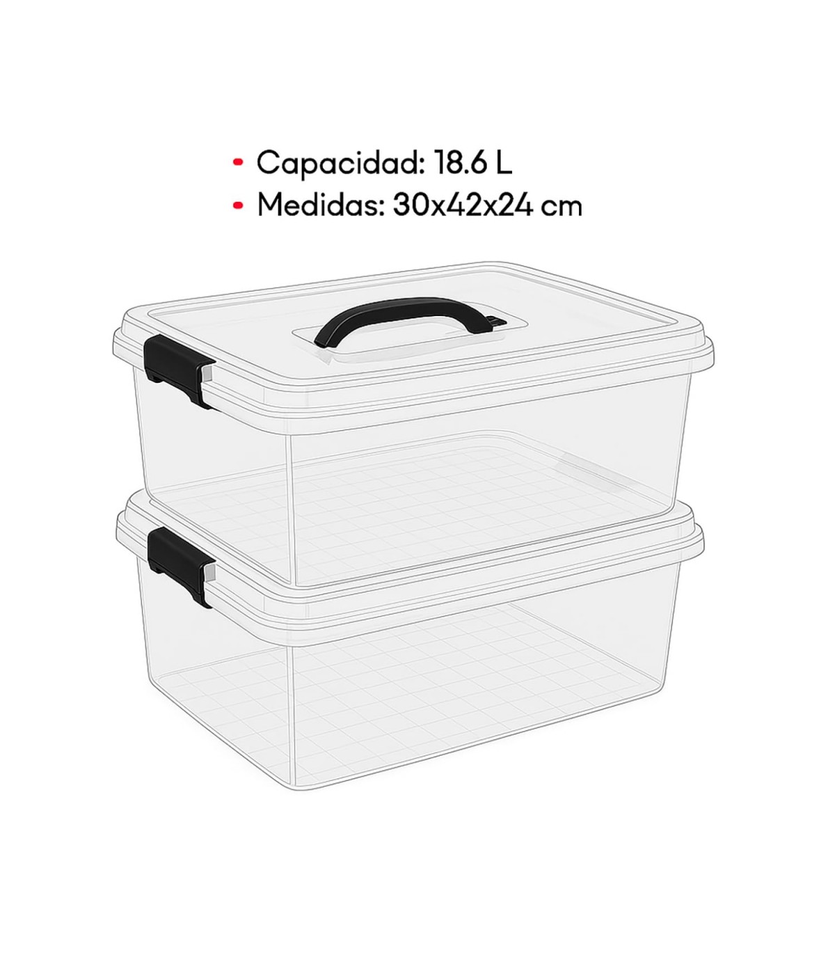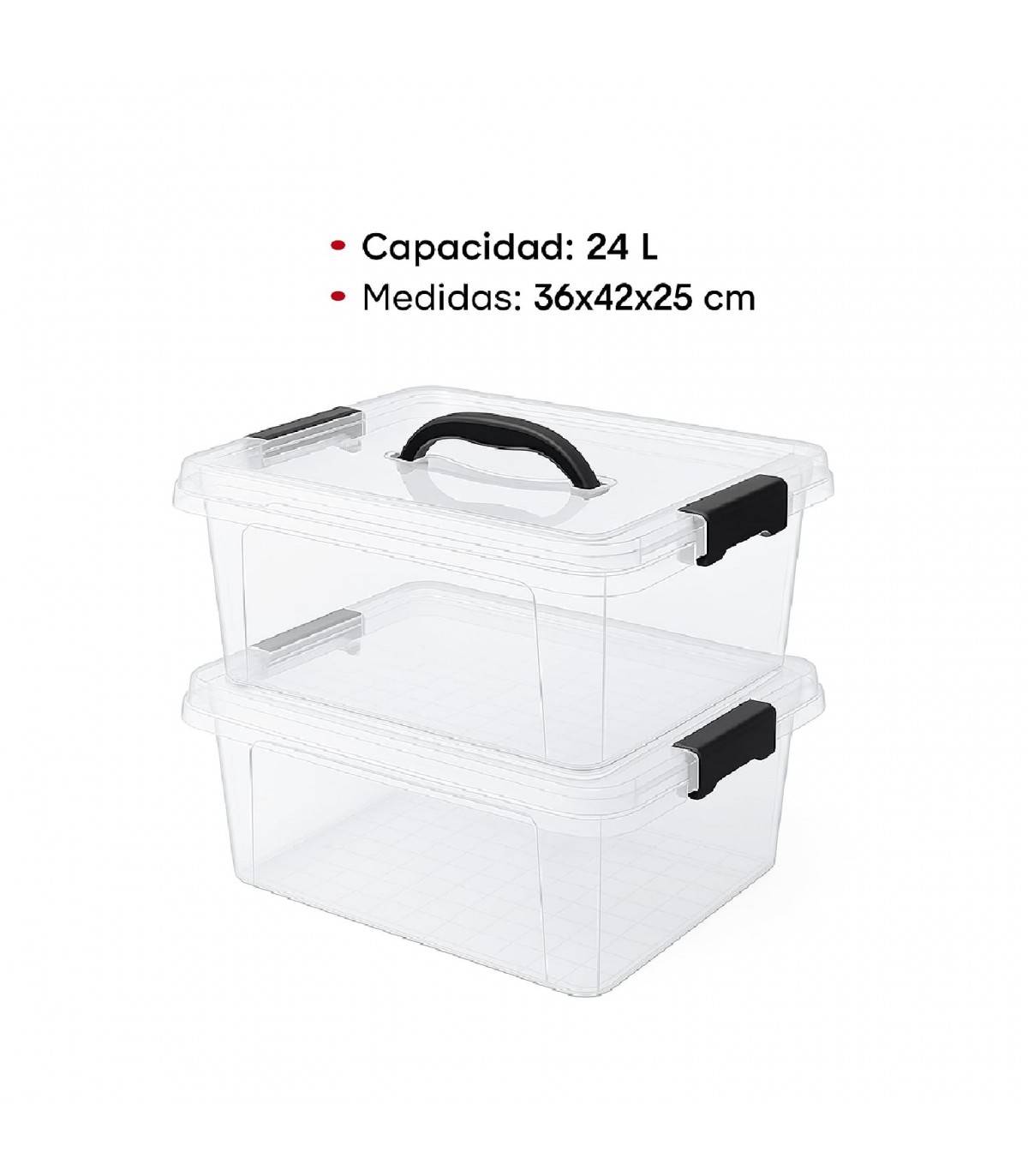 DISEÑO TRANSPARENTE Y MULTITAMAÑO. Visualiza el contenido de un vistazo gracias a su cuerpo transparente. Incluye tamaños que van desde 5.7L hasta 24L, para organizar desde objetos pequeños hasta artículos voluminosos.