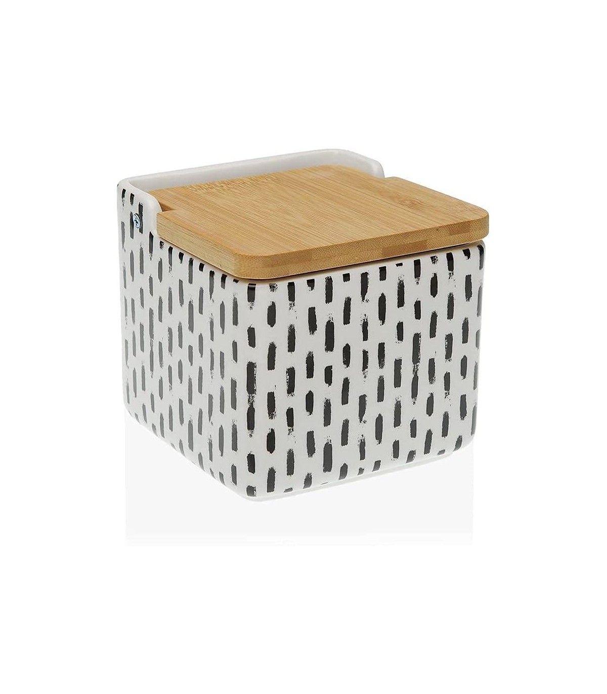 TIENDA EURASIA® Salero de Cocina de Cerámica con Tapa de Bambú Diseños Originales - 12,2 x 12,2 x 11,5 cm (Lauren, Salero - 12,2 x 12,2 x 11,5 cm)