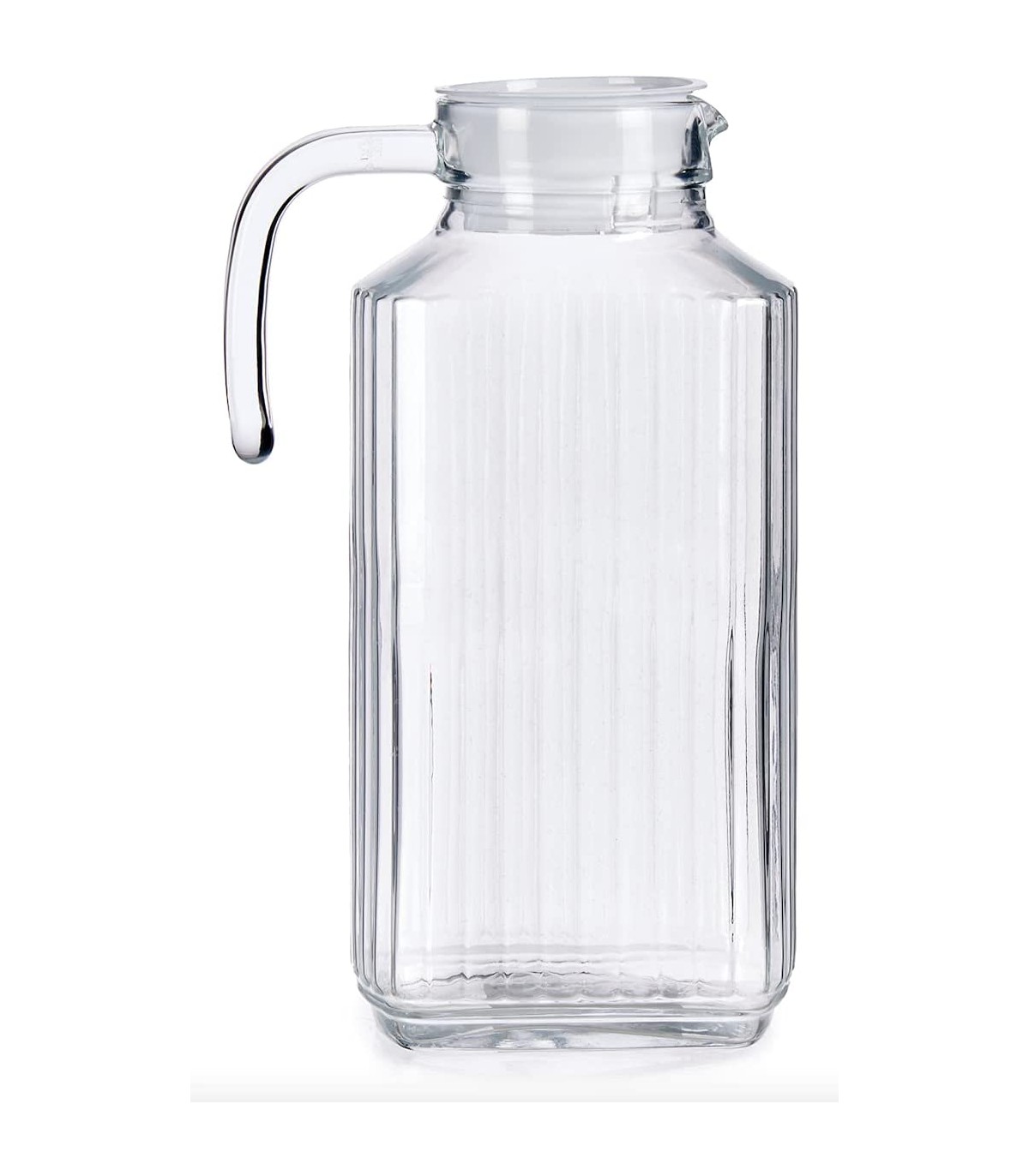 Jarra de Agua de Cristal - Diseño Moderno con Tapa de Color Rosa - Capacidad para 1,4 Litros - Ideal para el hueco de la Nevera - XIND53875
