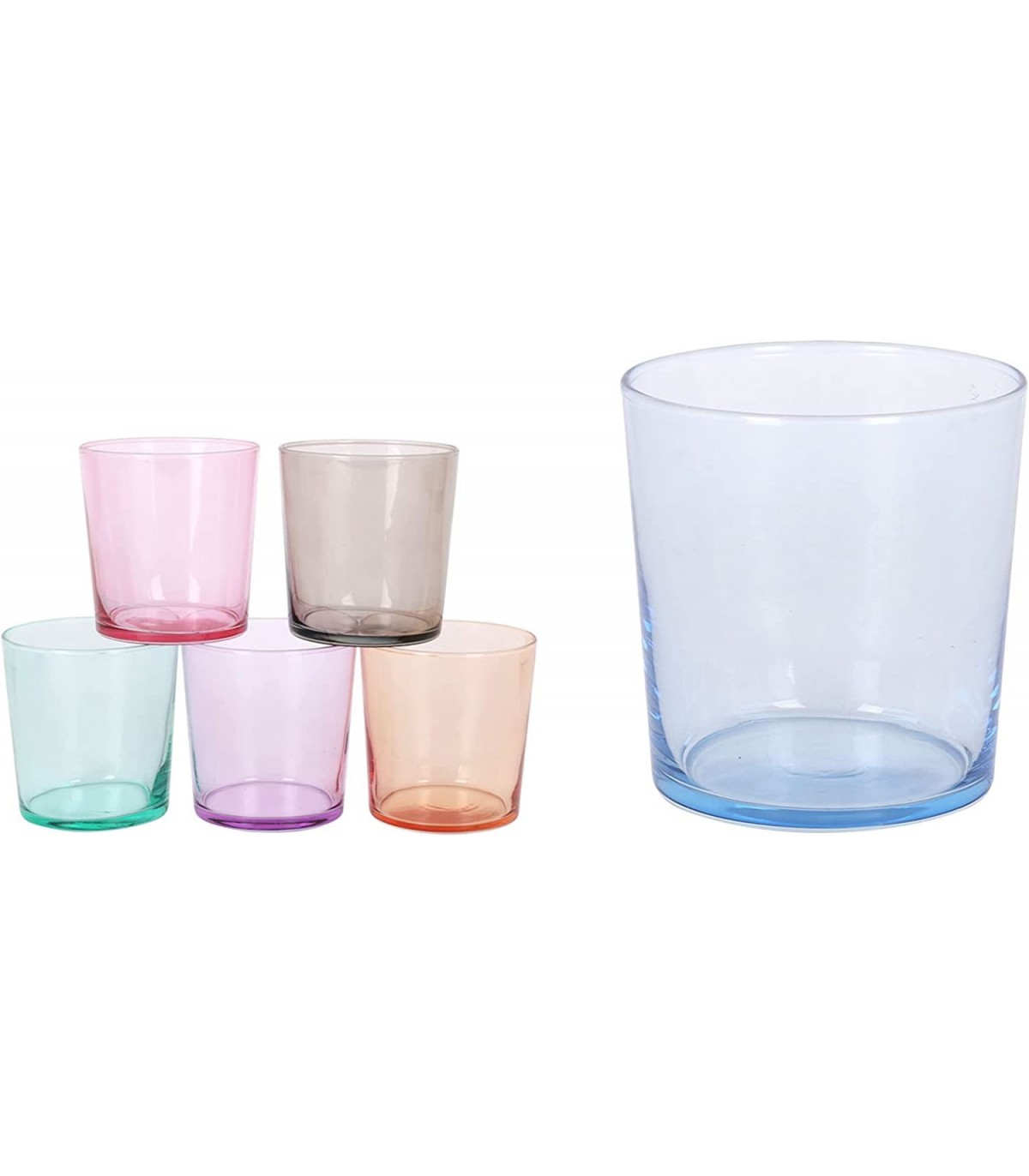 Pack 6 Vasos de Cristal de Colores 345 cc Resistente (Medium, Liso Color)