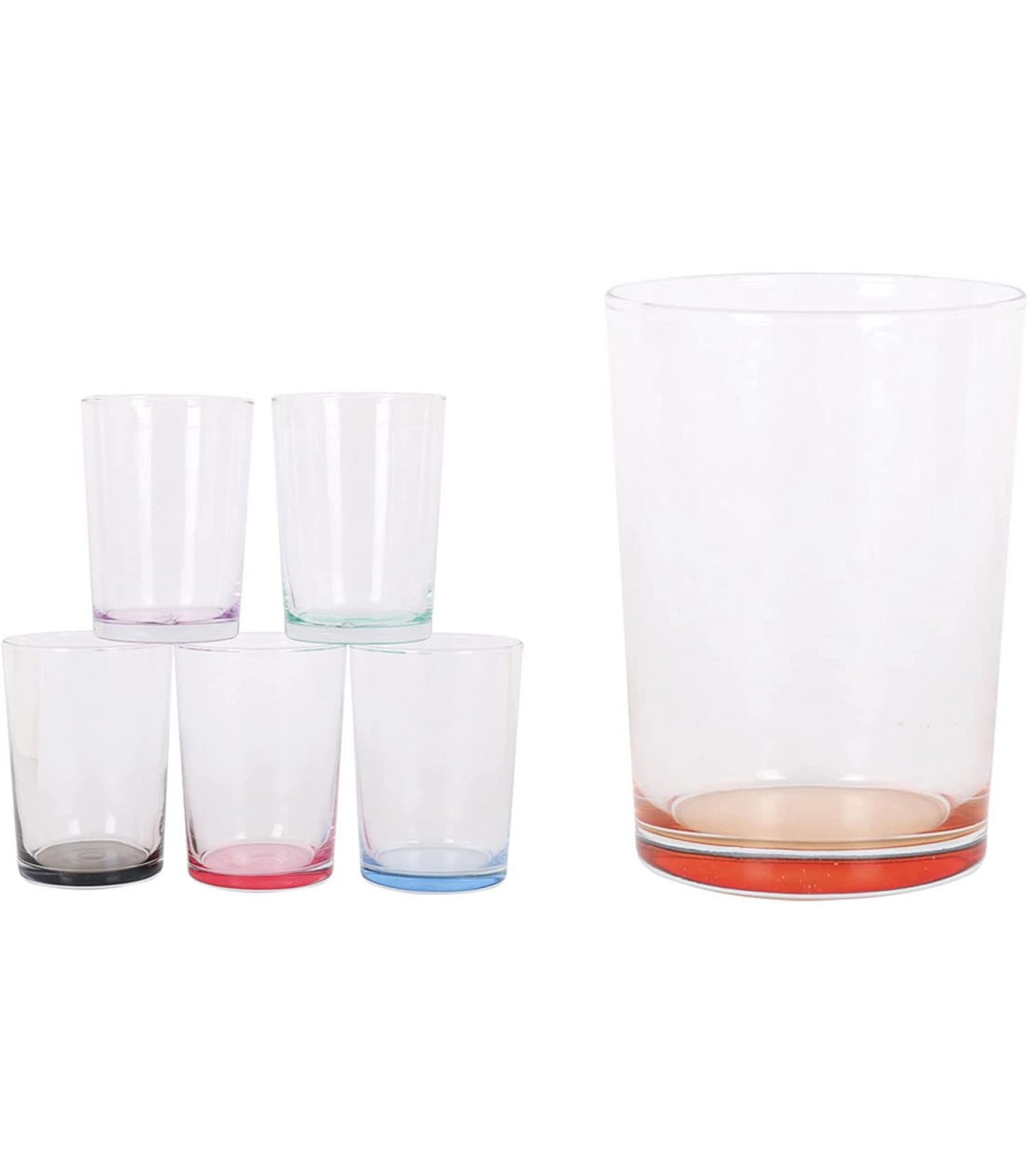 Pack 6 Vasos de Cristal de Colores 520 cc Resistente (Largue, Liso Transparente)