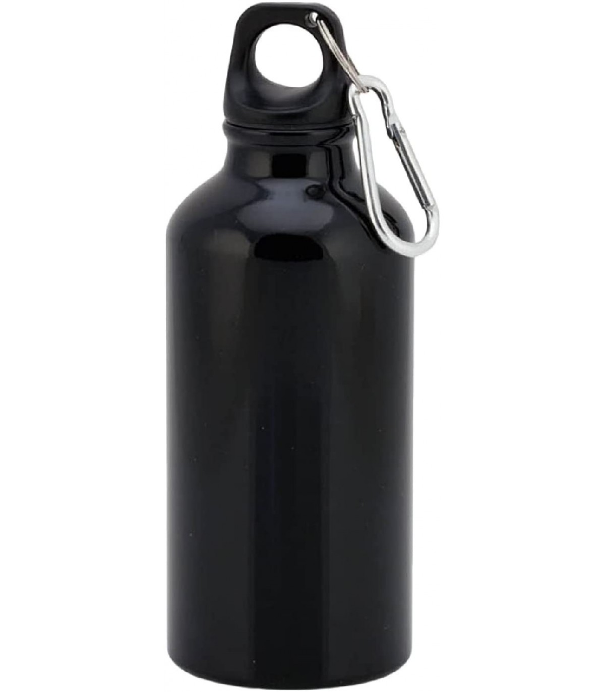 Pack de 2 Botellas de Aluminio, 400 ml, Tapón de Seguridad y Mosqueton, Negro
