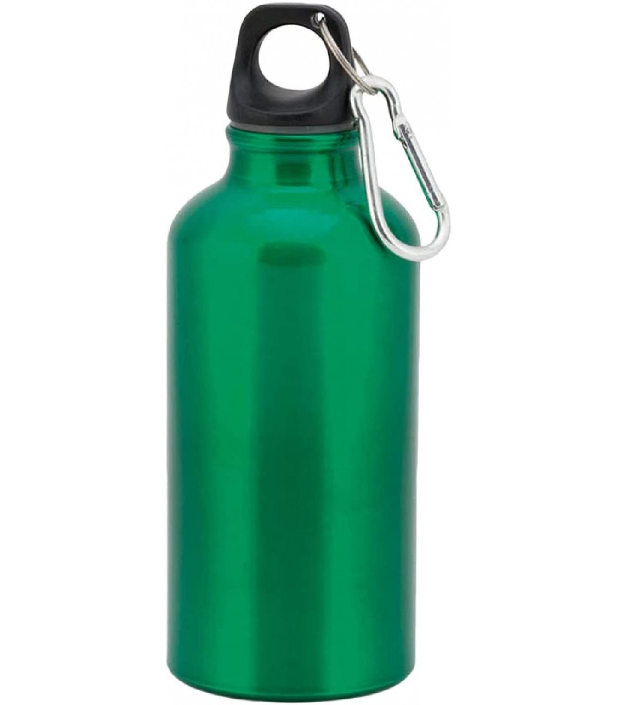 Pack de 2 Botellas de Aluminio, 400 ml, Tapón de Seguridad y Mosqueton, Verde