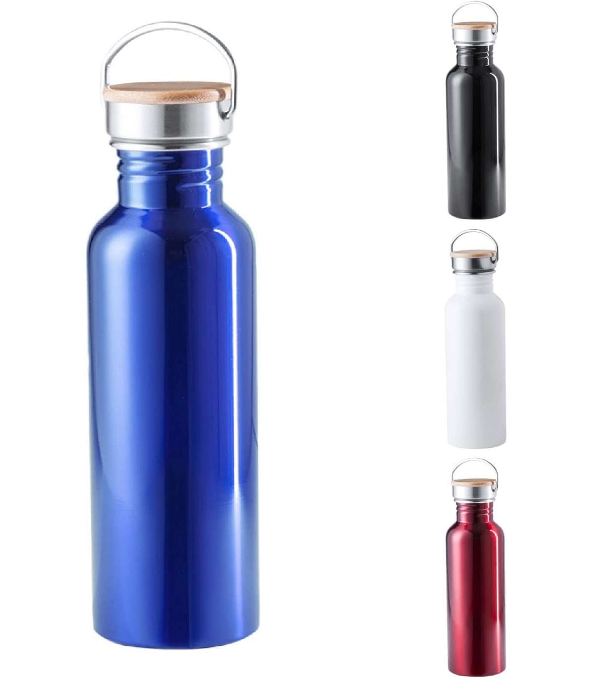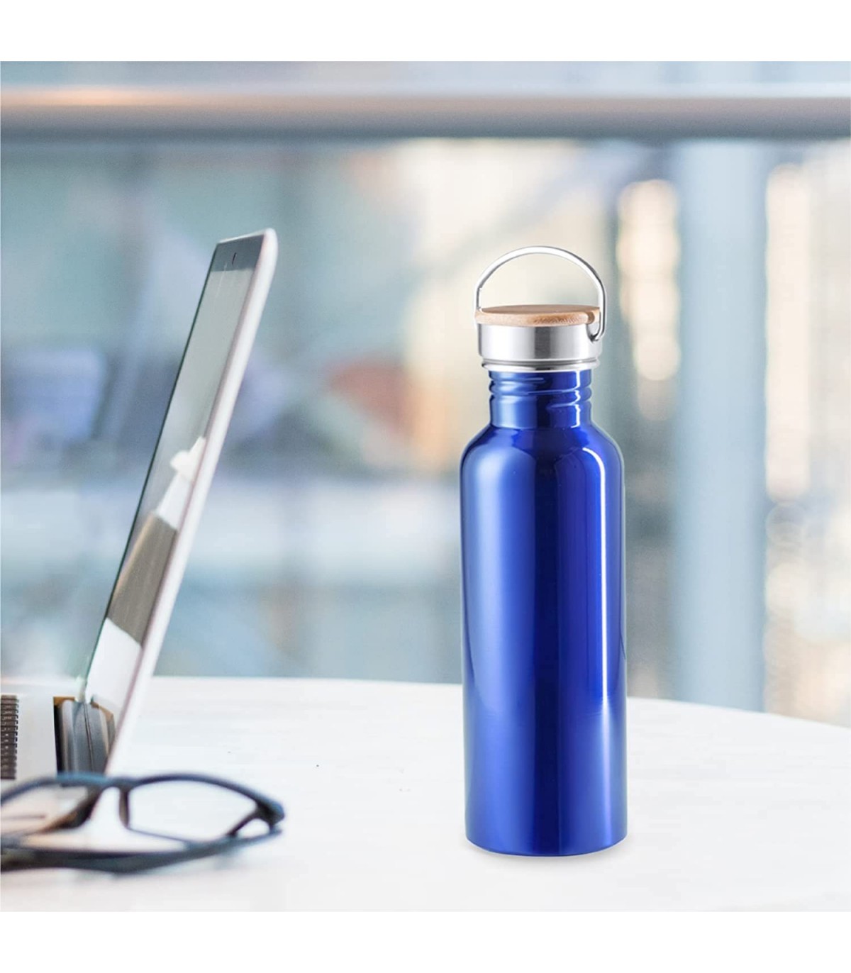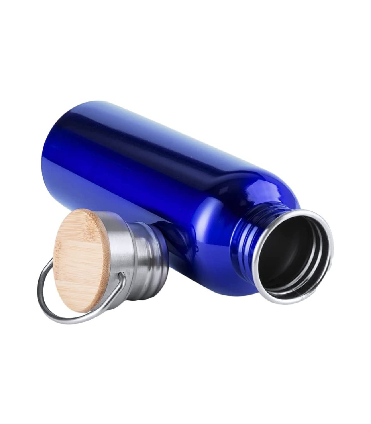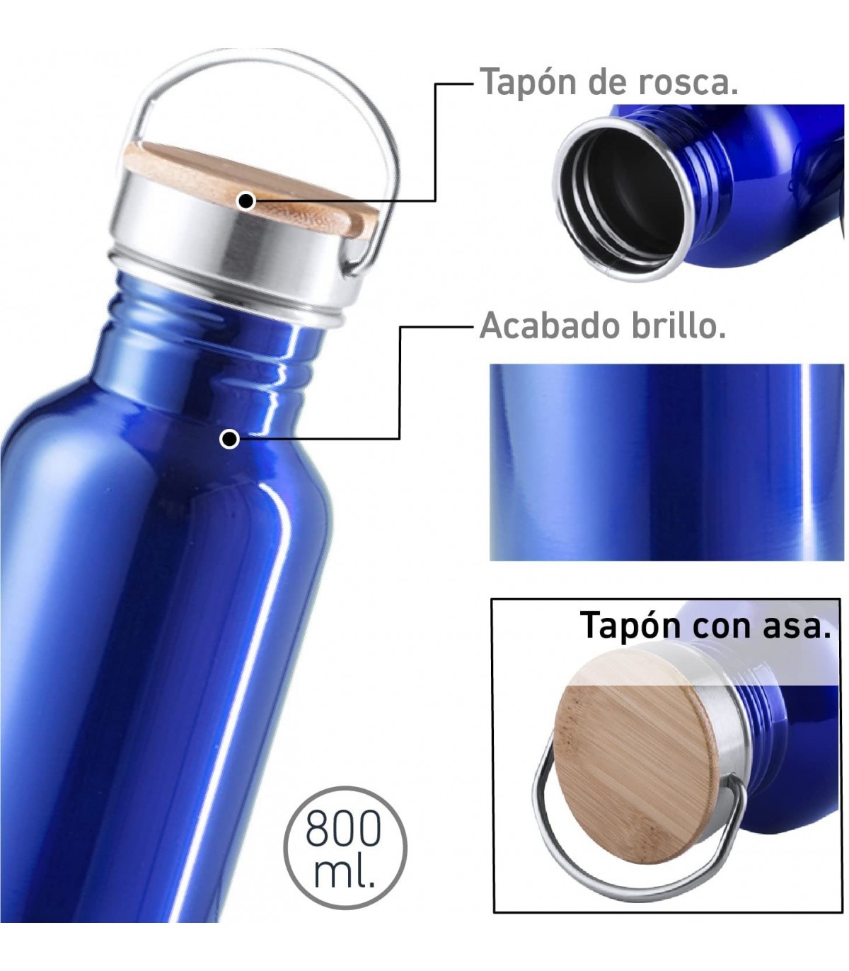 Botella de Acero Inox, 800 ml, Tapon a Rosca con Asa, Resistente, Azul