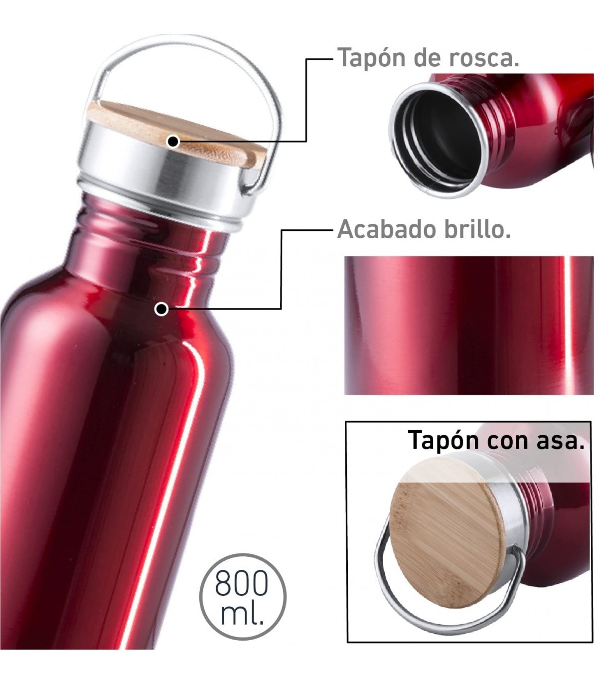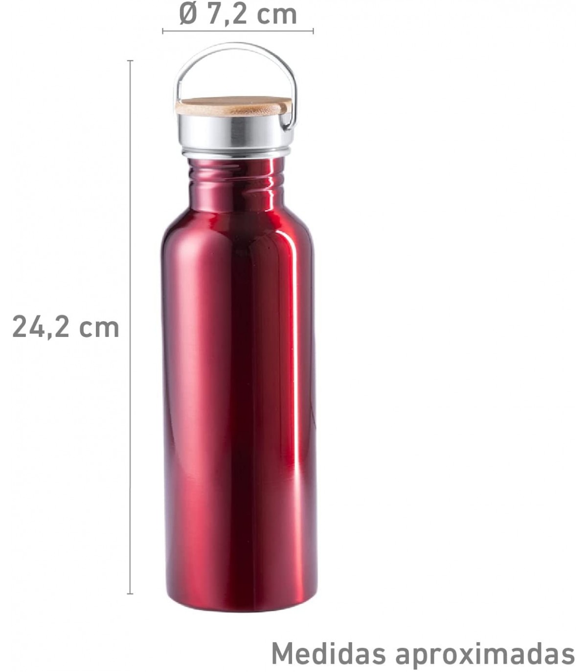 Botella de Acero Inox, 800 ml, Tapon a Rosca con Asa, Resistente, Rojo