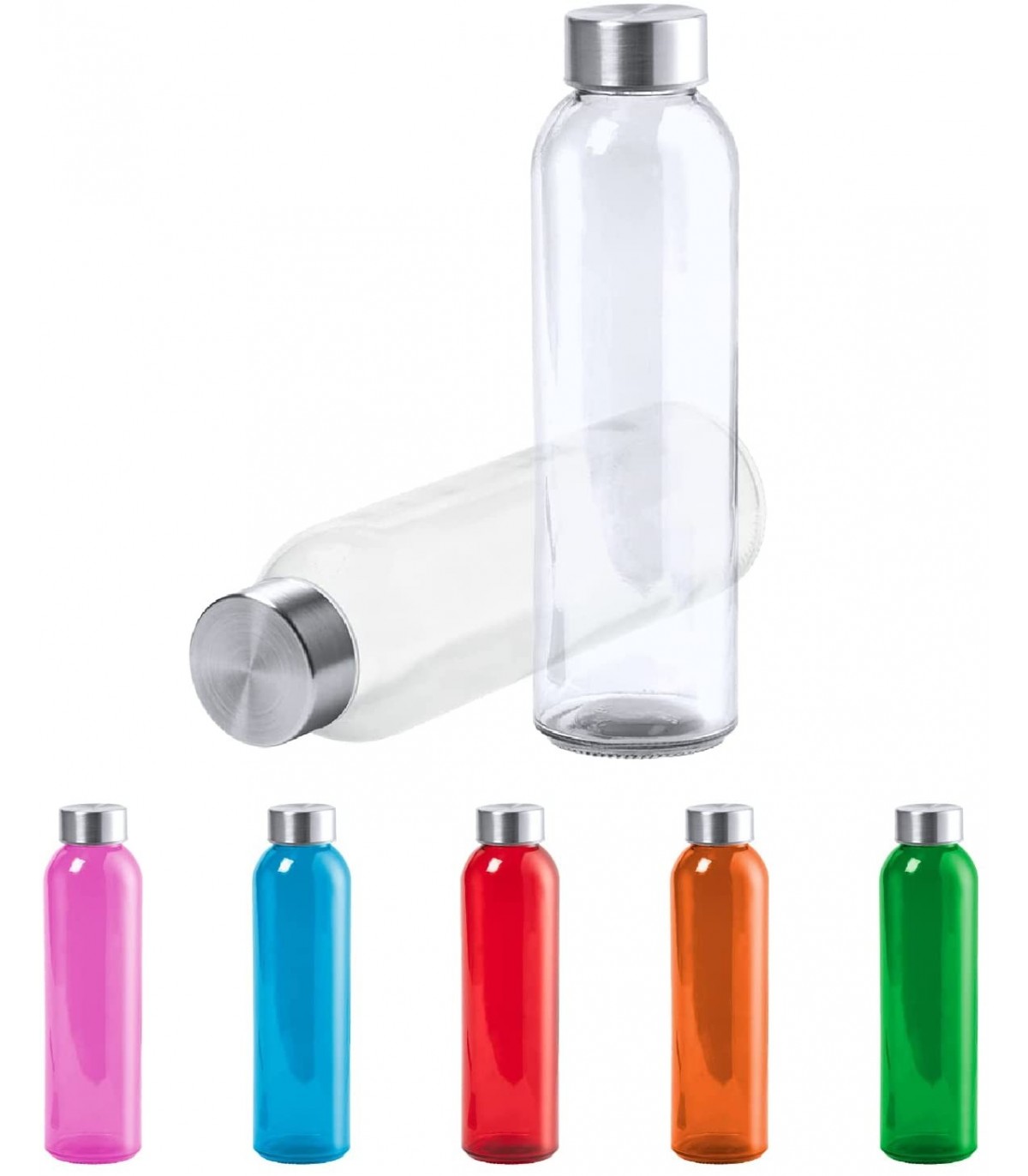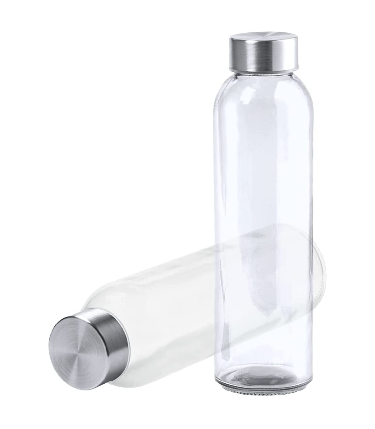 Pack de 2 Botellas Transparente, 500 ml, de Cristal y Tapon a Rosca de Acero Inox, Resistente, Transparente
