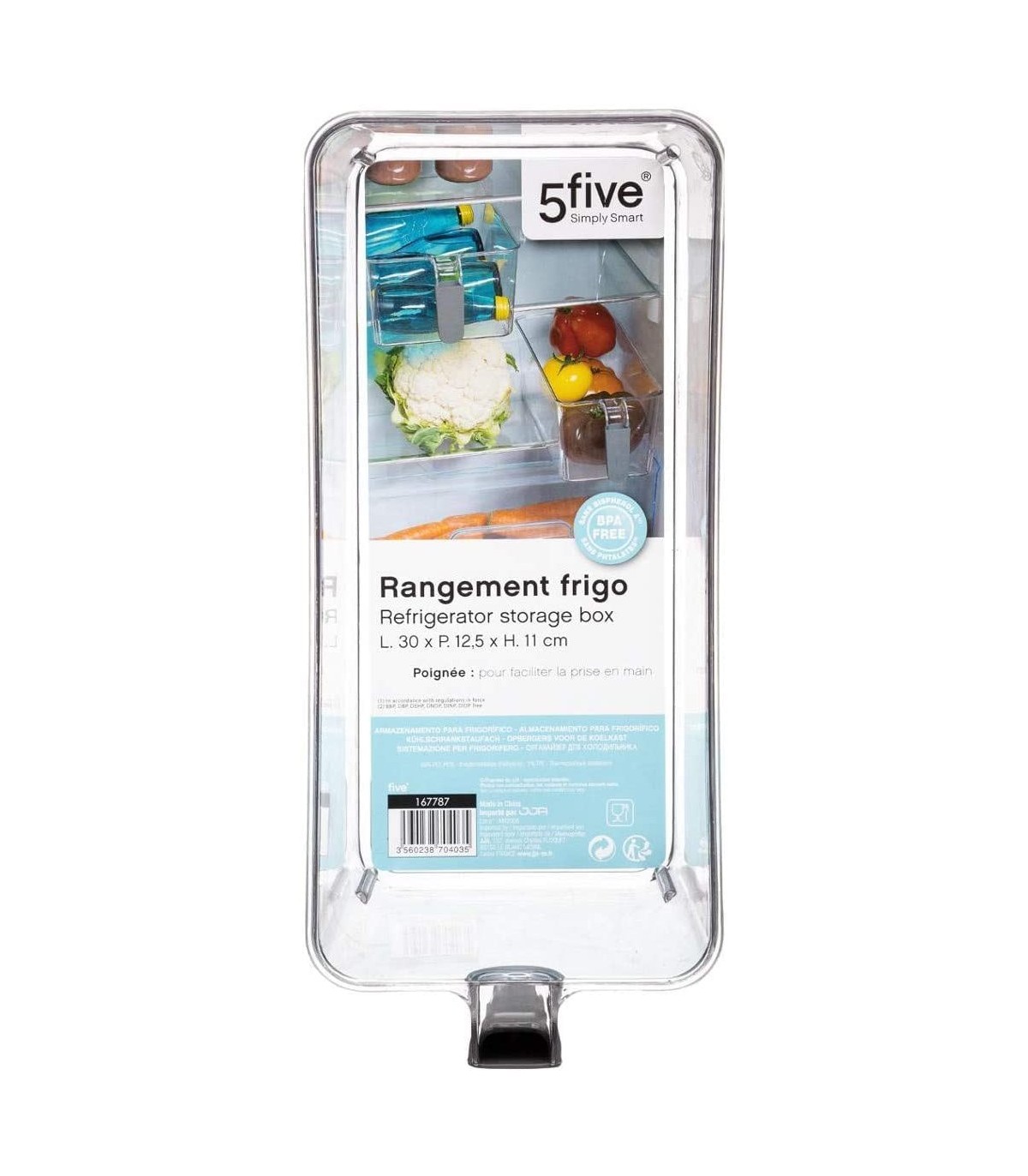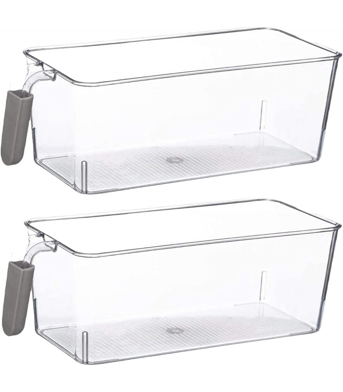 Pack 2 Recipientes de Almacenamiento para el Frigorifico, Polietileno Transparente, Asa Antideslizante (Medium 30x12,5x11cm)