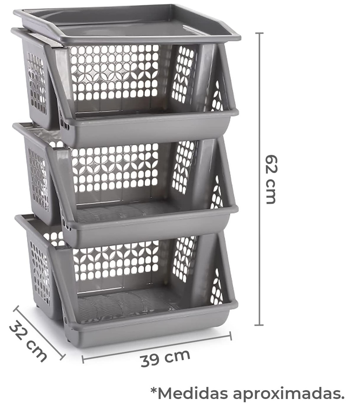 Verdulero Cocina de 3 Alturas de Plastico, 39x32x62cm (Gris Claro)