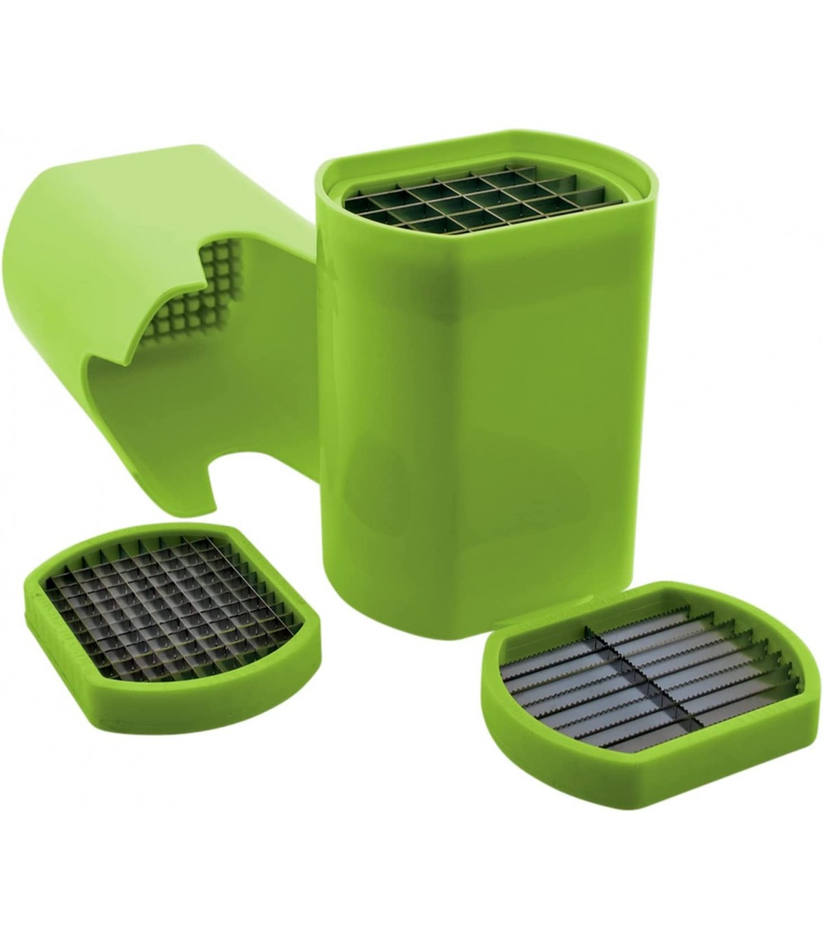 ? Cortador de patatas. ? Fabricada en plástico y acero inoxidable. ? Material resistente y duradero. ? Se desmonta fácilmente para una limpieza más sencilla. ? Incluye 3 tamaños de cuchillas. Cuchilla de corte cuadrado de 0,6 x 0,6 cm, cuchilla de tiras de 3,5 x 0,6 cm, cuchilla de corte cuadrado de 1 x 1 cm.