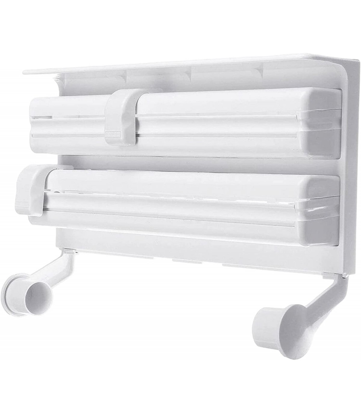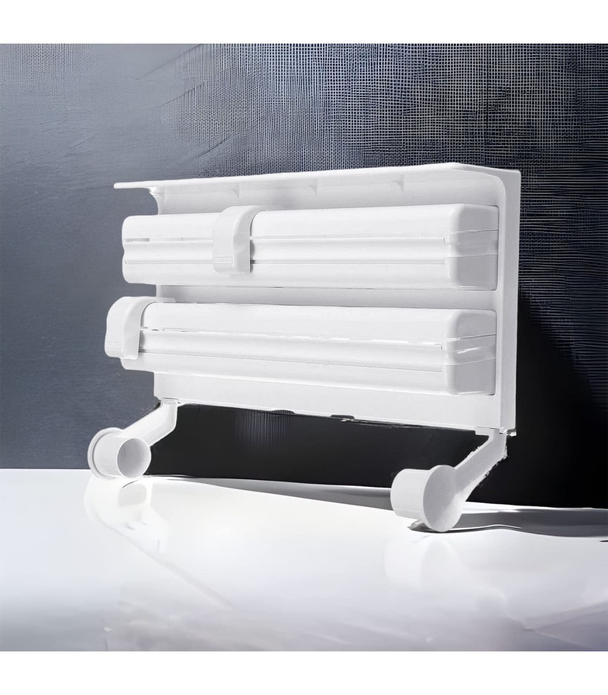 ¡Bienvenido a nuestro Dispensador de Papel 3 en 1 multifunción! Este dispensador es la solución perfecta para tener tus rollos de papel de cocina, papel aluminio y papel film al alcance de la mano y organizados en un solo lugar.