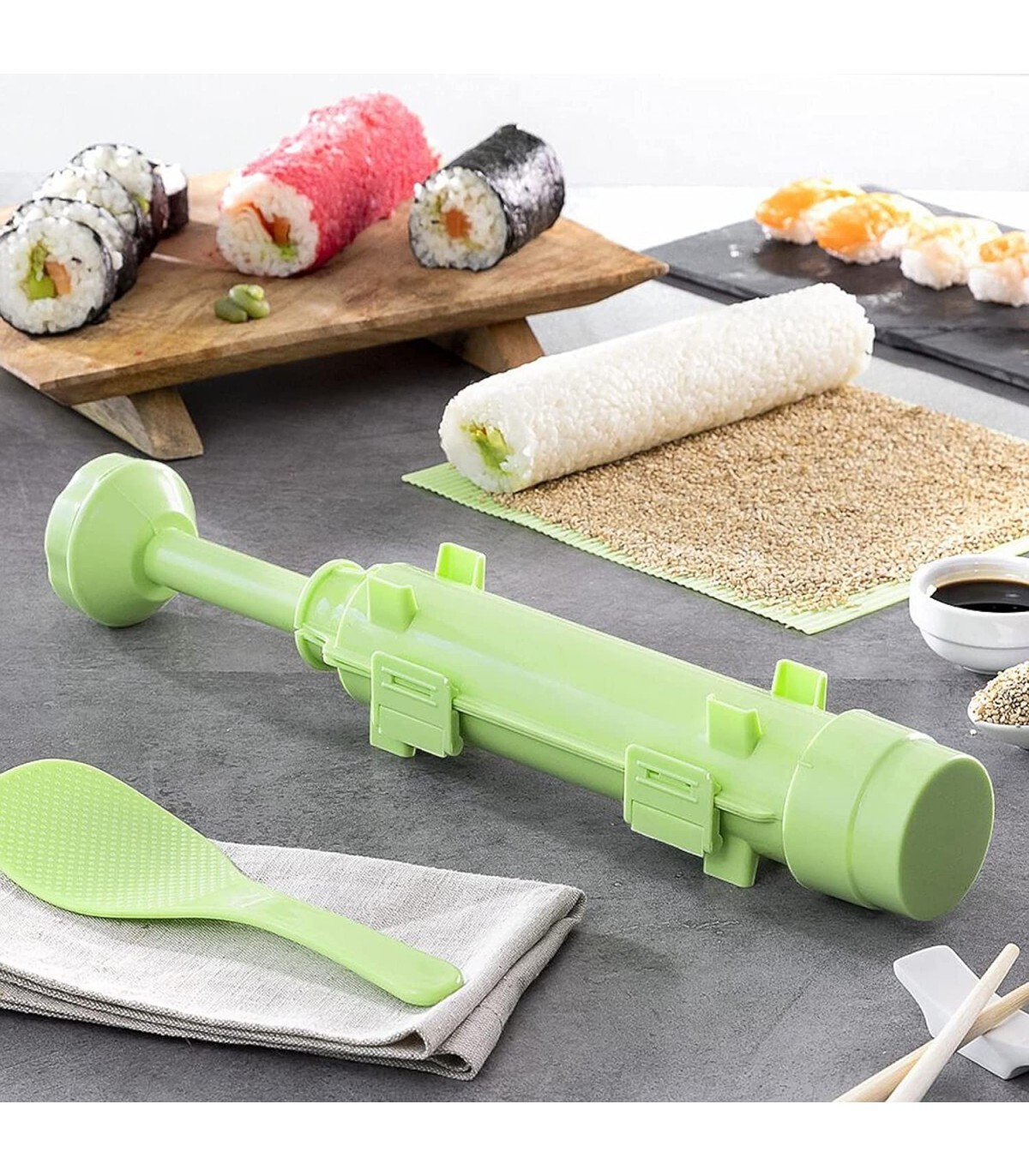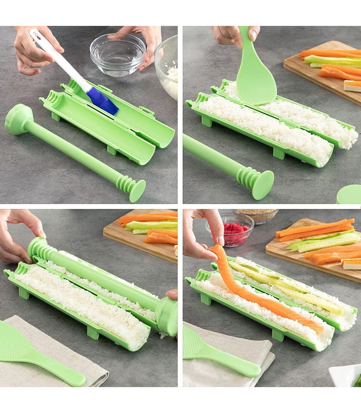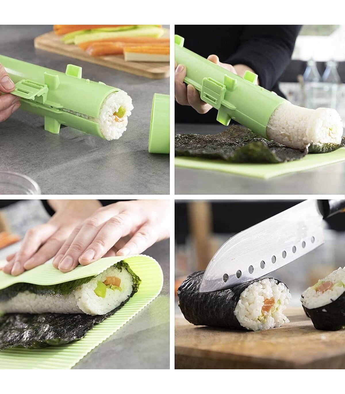 La primera pieza es un molde de sushi, que te permitirá crear rollos de sushi perfectamente formados en cuestión de minutos. Simplemente coloca el arroz y los ingredientes en el molde, ciérralo y voilà, ¡un rollo de sushi perfecto!