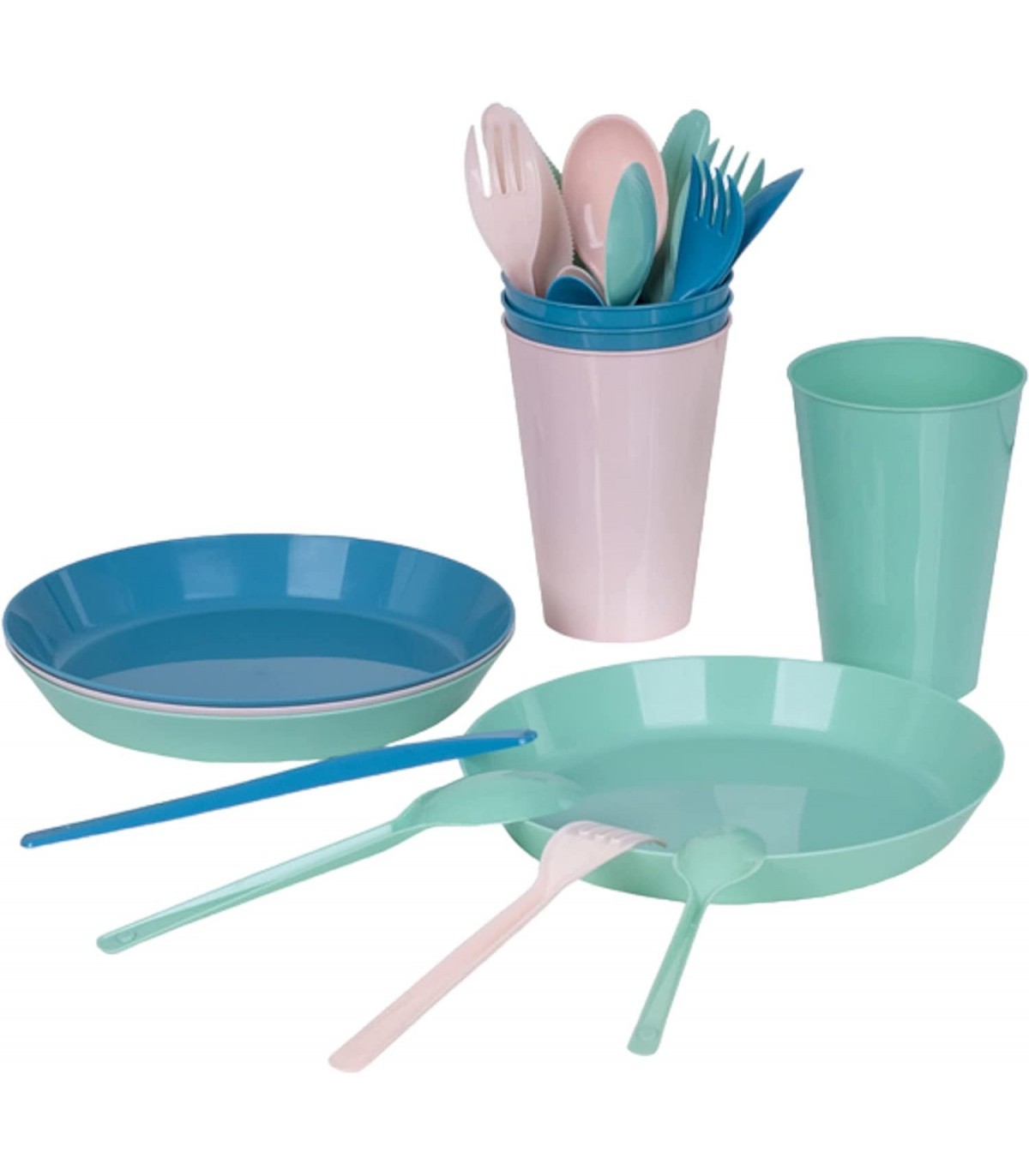 Con cuatro servicios completos de cubiertos, platos y vasos, nuestro set de vajilla reutilizable es perfecto para compartir con amigos y familiares. Fabricado con materiales de alta calidad, este set es libre de BPA y no tóxico, lo que lo hace seguro para todas las edades.