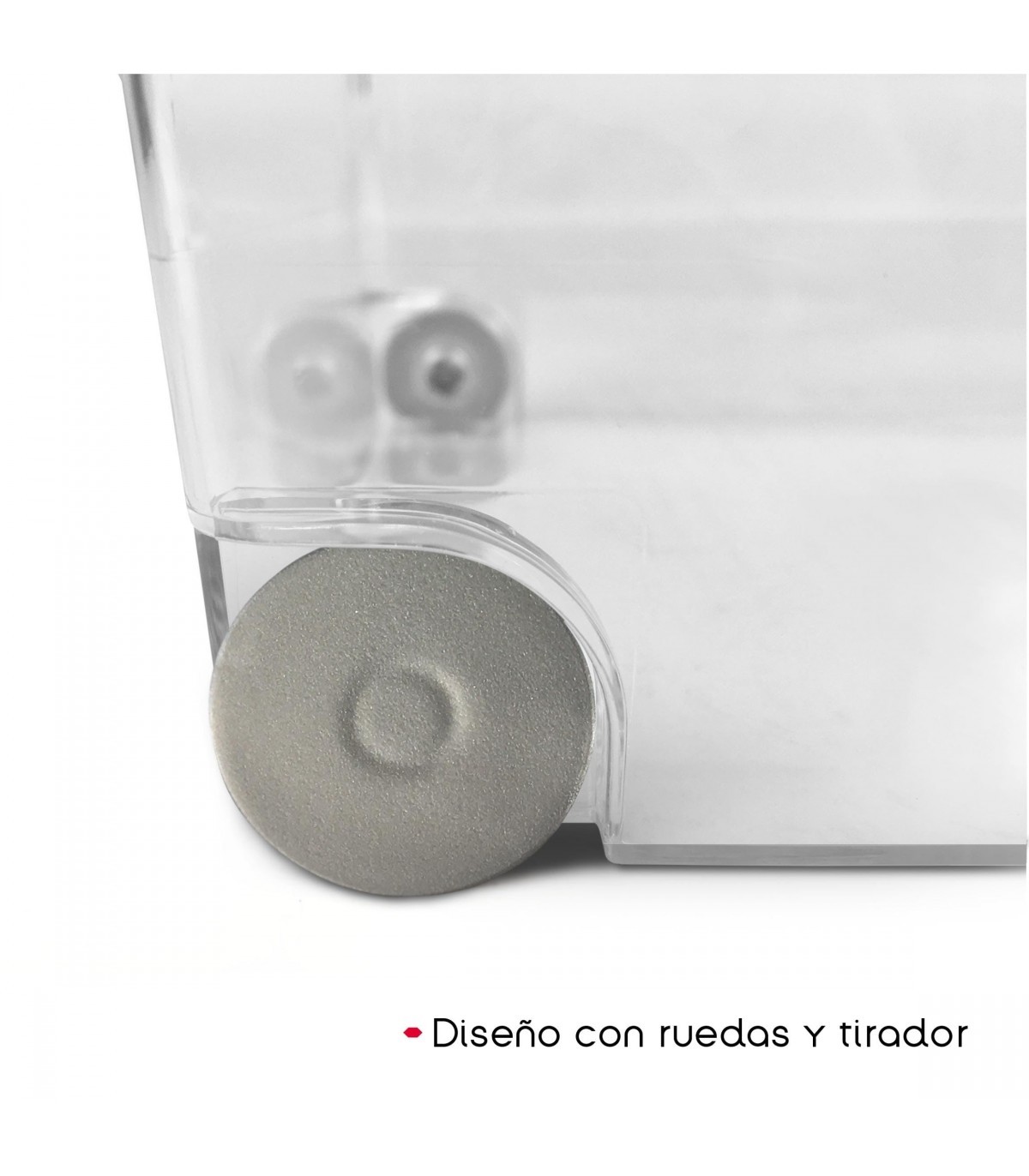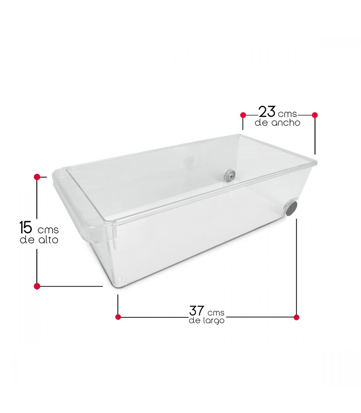 Mantén tu frigorífico organizado y tus alimentos siempre a la vista con nuestro cajón para frigorífico transparente con tirador y ruedas. Diseñado para optimizar el espacio y facilitar el acceso a tus alimentos, este práctico cajón es la solución ideal para mantener tu refrigerador ordenado y libre de desorden.