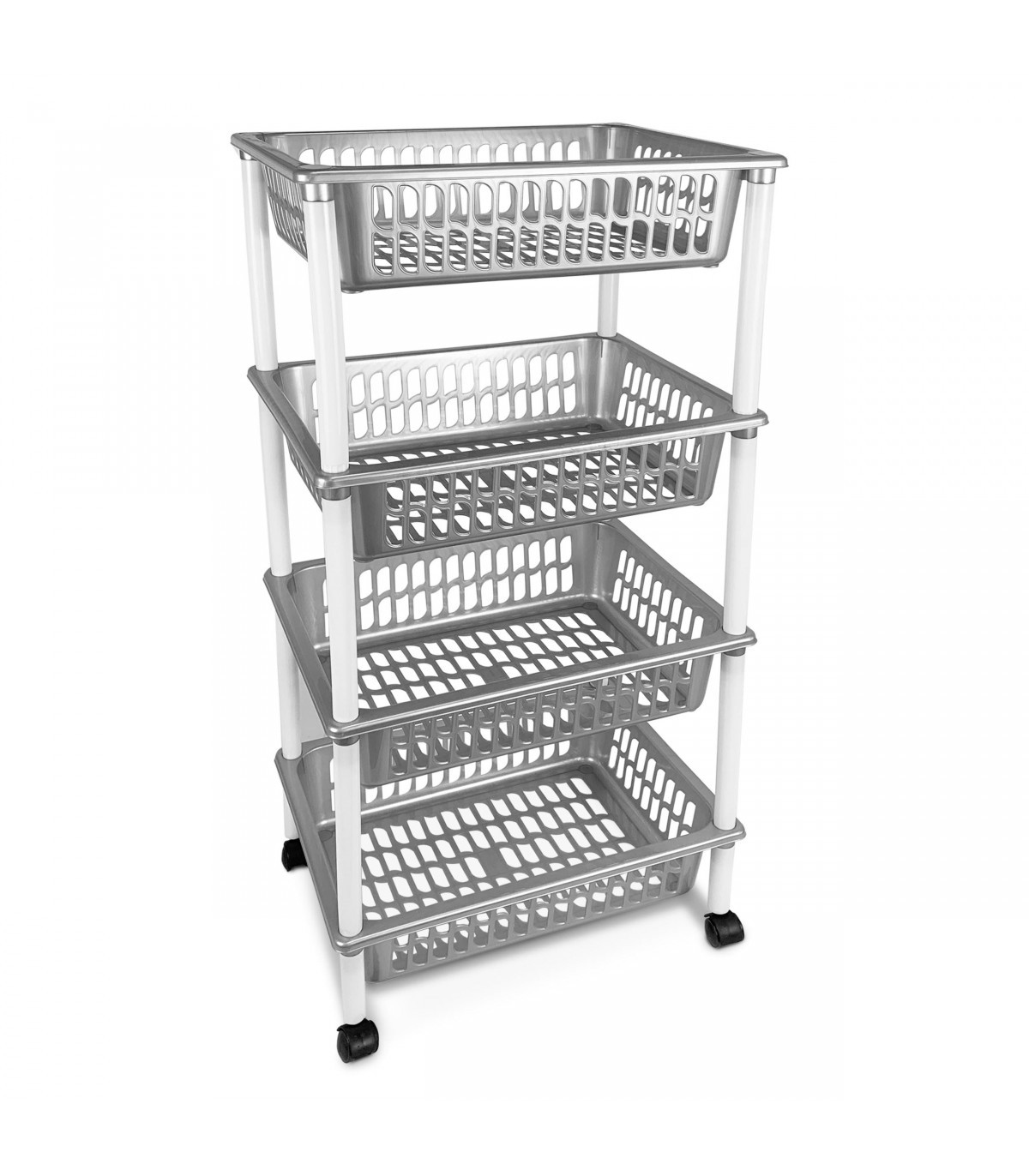 Carrito de Cocina con 4 Cestas y Ruedas, 40x30x85cm, Plástico Libre de BPA y Metal (Plata)