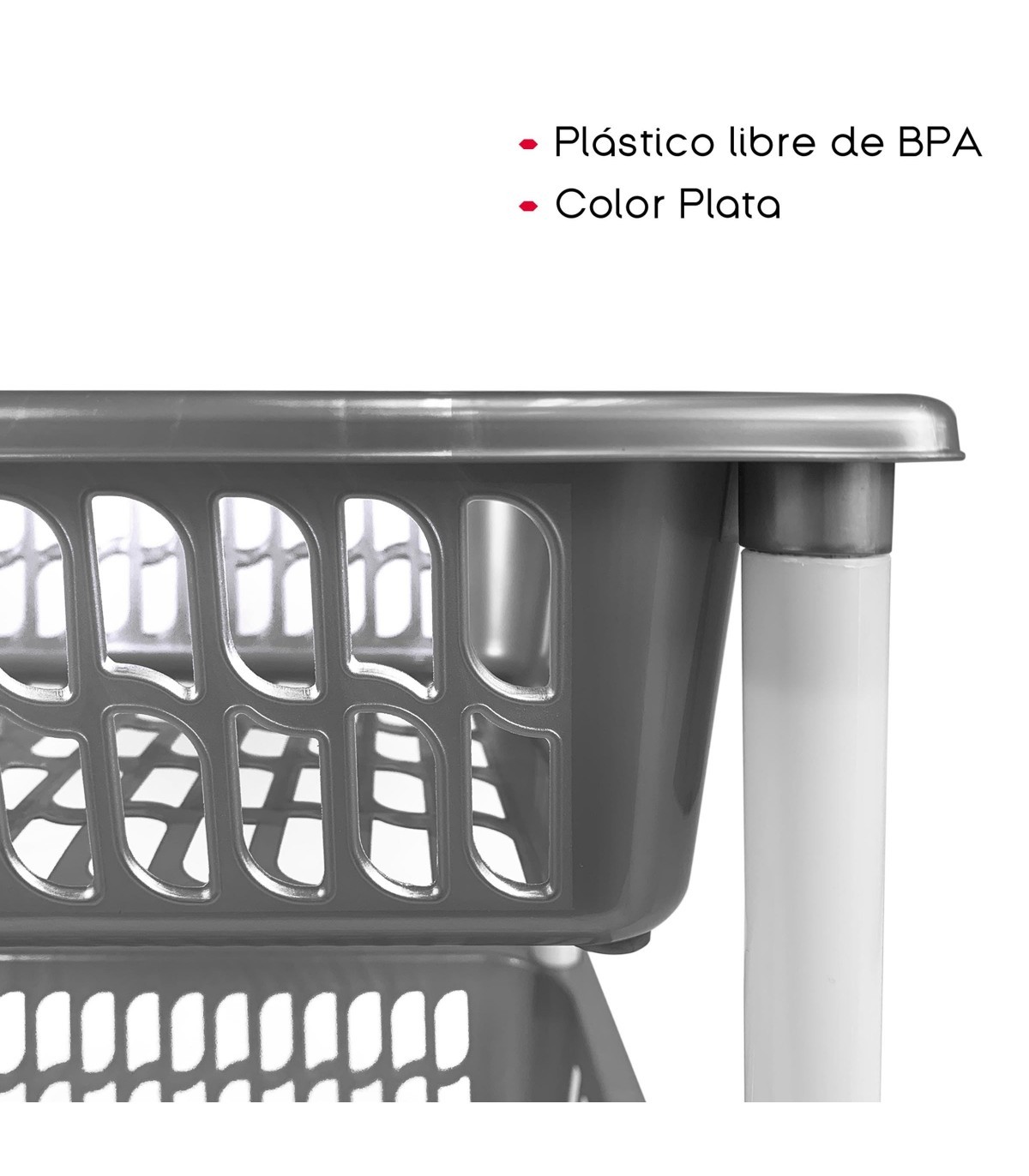Cada detalle está cuidadosamente pensado: las cuatro cestas proporcionan un espacio amplio para guardar tus elementos esenciales, desde utensilios de cocina hasta productos de despensa. Fabricadas con plástico libre de BPA, estas cestas no solo son seguras para tu familia, sino que también son fáciles de limpiar y mantener impecables.