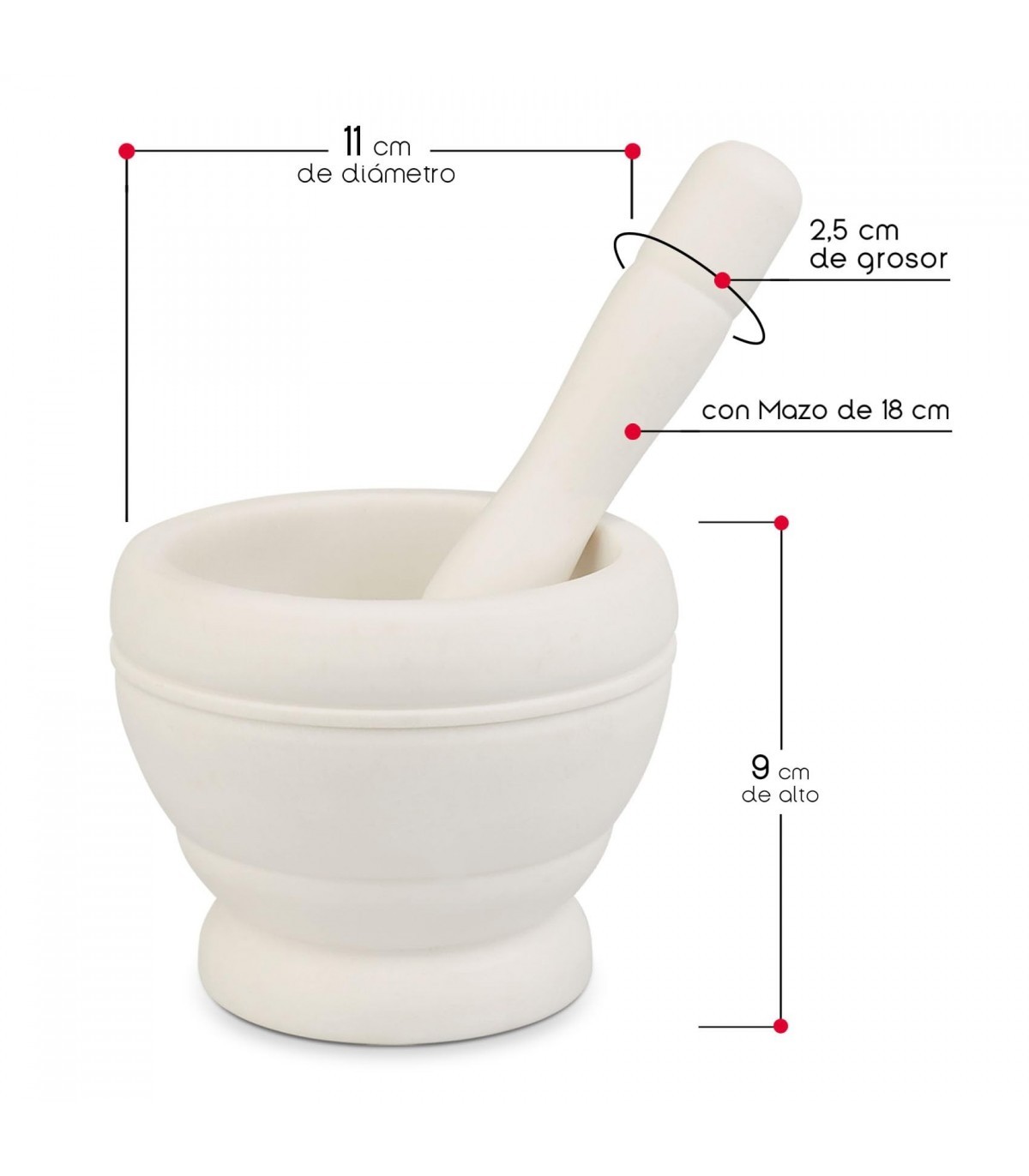 El color marfil y el diseño sencillo hacen que este mortero sea un complemento estiloso para tu cocina. No solo es funcional, sino que también añade un toque de elegancia a tu espacio culinario.