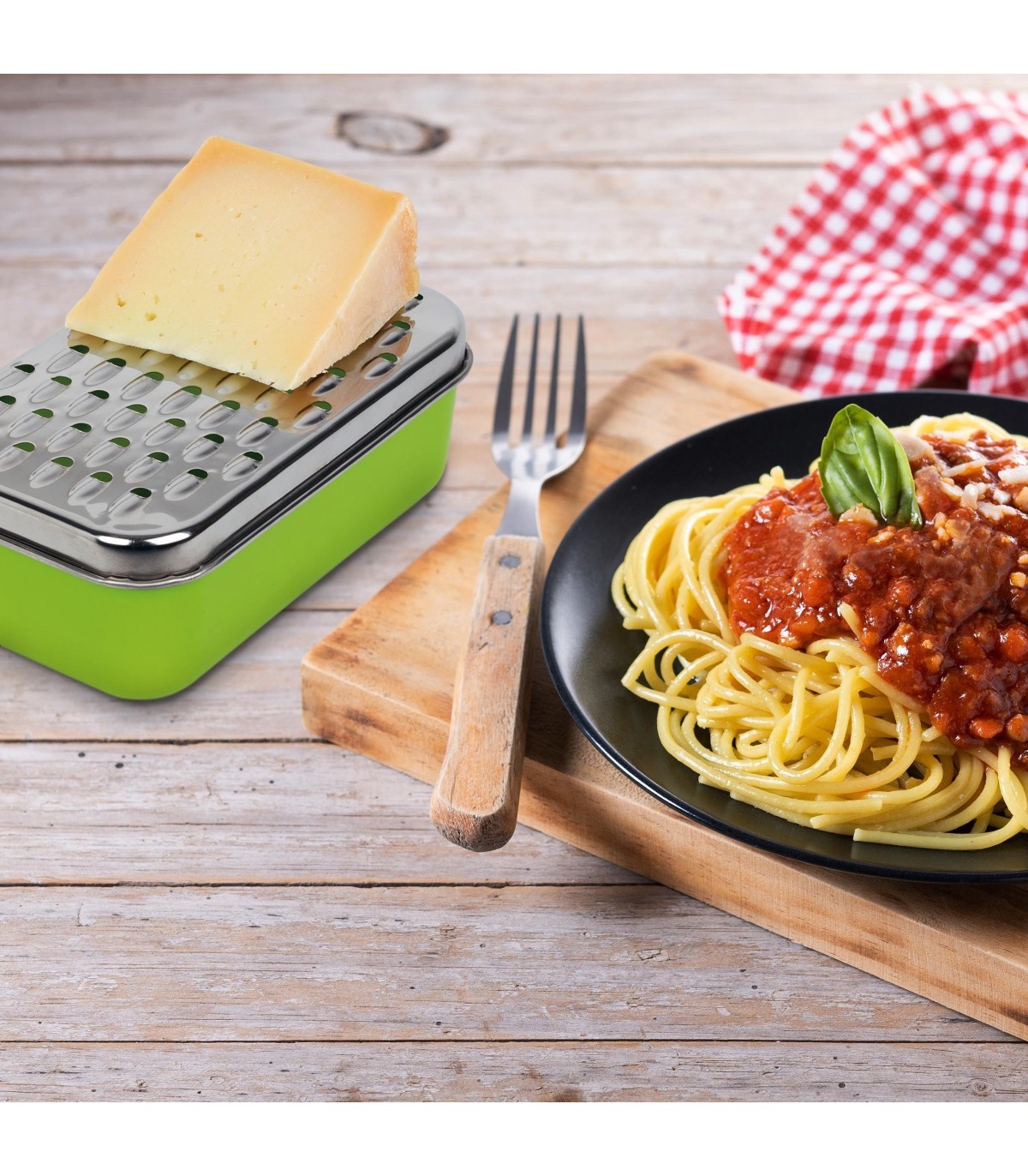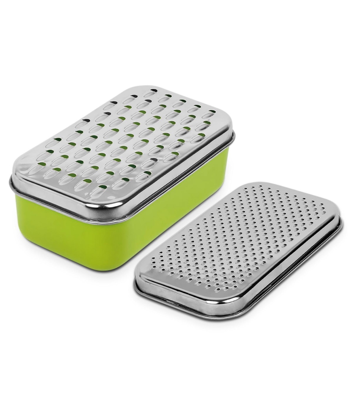 Con su recipiente y tapa incluidos, este rallador no solo te ahorra tiempo en la cocina, sino también en la limpieza. La base antideslizante garantiza un uso seguro y eficiente, sin derrames ni desperdicios. Fabricado con acero inoxidable de alta calidad, este rallador es duradero y resistente al desgaste diario. Su color verde fresco añade un toque de estilo a tu espacio culinario.