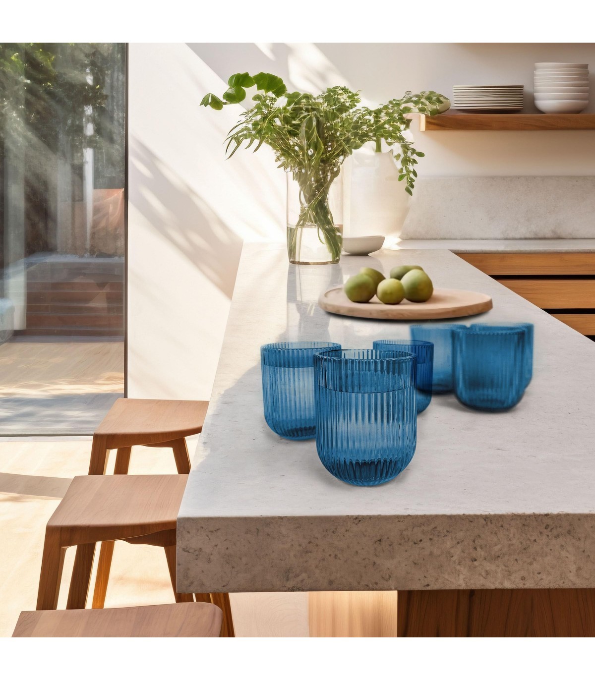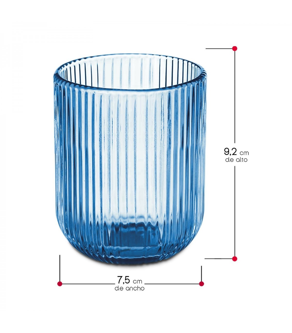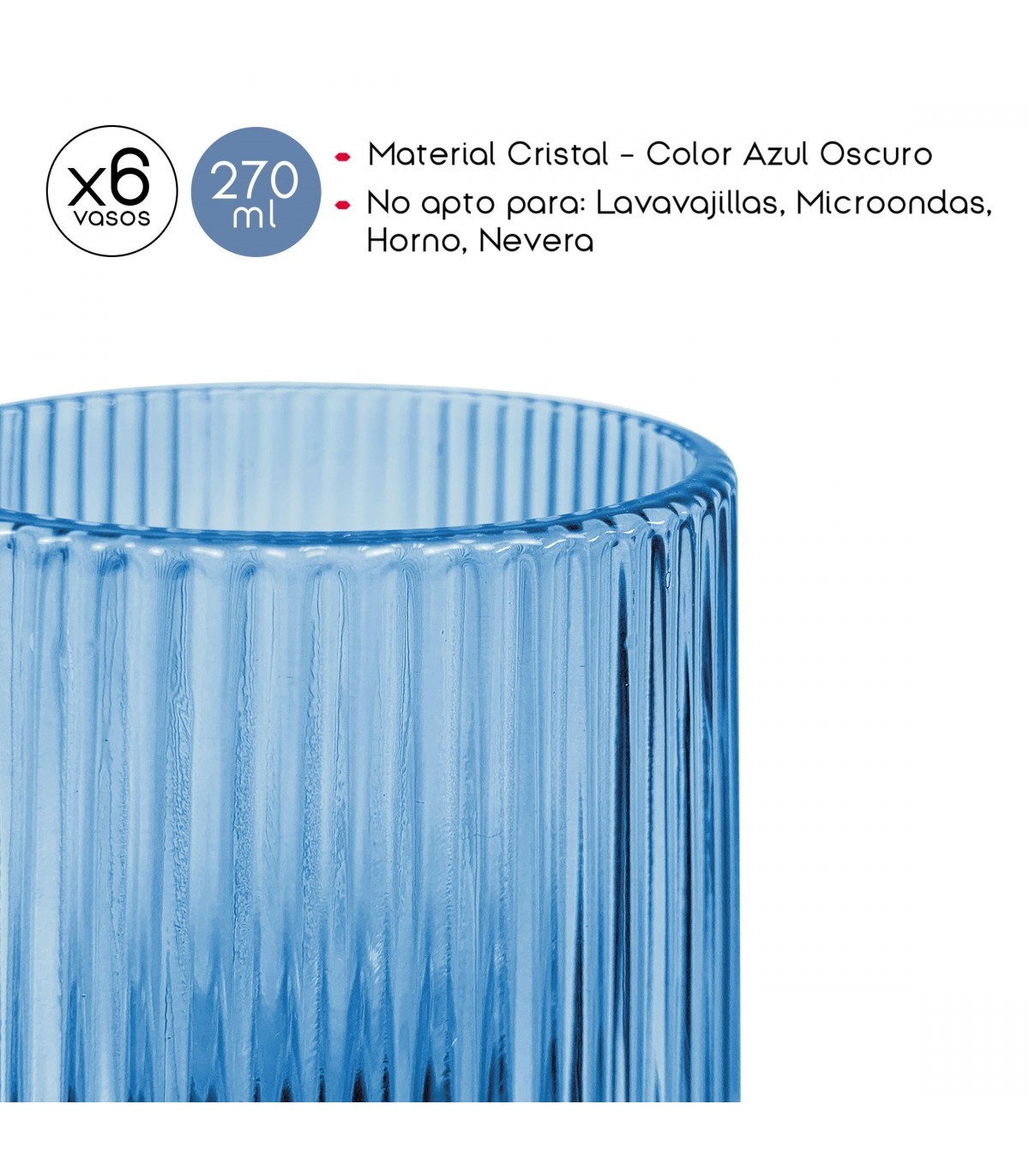 Vaso Caja 6 Unidades, Cristal de Rayas, no Apto para Lavavajillas ni Microondas (270 ml, Azul)