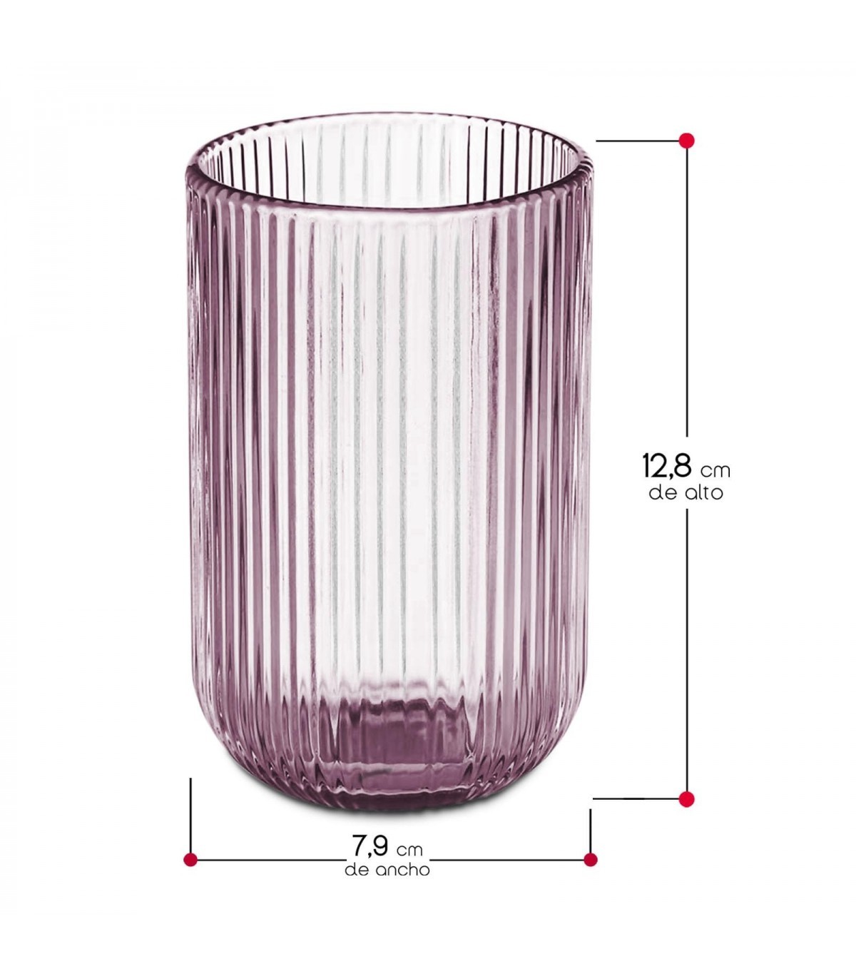Vaso Caja 6 Unidades, Cristal de Rayas, no Apto para Lavavajillas ni Microondas (430 ml, Rosa)
