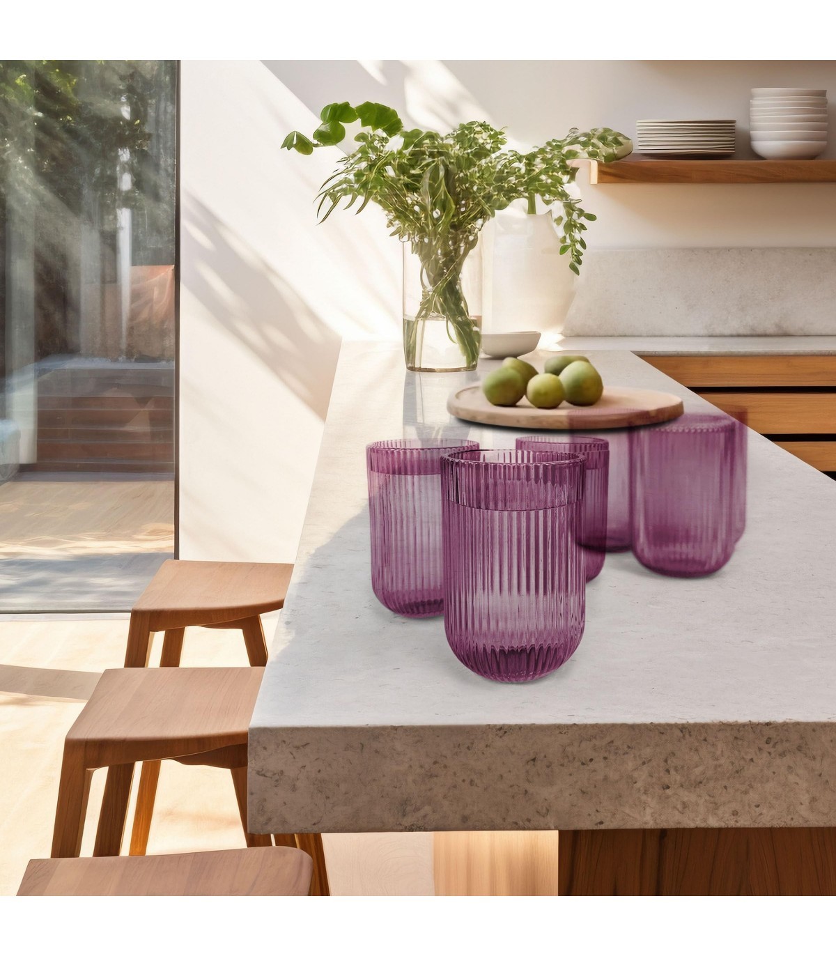 br>Explora la elegancia en cada sorbo con nuestro conjunto de vasos altos y bajos de cristal de rayas, cuidadosamente empaquetados en una caja de 6 unidades. La diversidad de tamaños, con los vasos altos de 430 ml y los bajos de 270 ml, ofrece opciones adaptadas a cada ocasión. En una paleta de colores que incluye transparente, rosa, verde musgo y azul oscuro, estos vasos no solo son prácticos, sino también una obra de arte para tu mesa.br> br>La textura distintiva de rayas no solo añade un toque visualmente impactante, sino que también mejora la experiencia sensorial de cada bebida. Ya sea sirviendo agua refrescante, zumos vivaces o cócteles elegantes, estos vasos son versátiles y estilizados. Aunque cautivan con su belleza, ten en cuenta que no son aptos para lavavajillas, microondas ni horno, manteniendo su encanto a través de cuidados sencillos. Celebra la sofisticación en cada ocasión con este juego de vasos que transforma cada momento en una experiencia memorable.br>