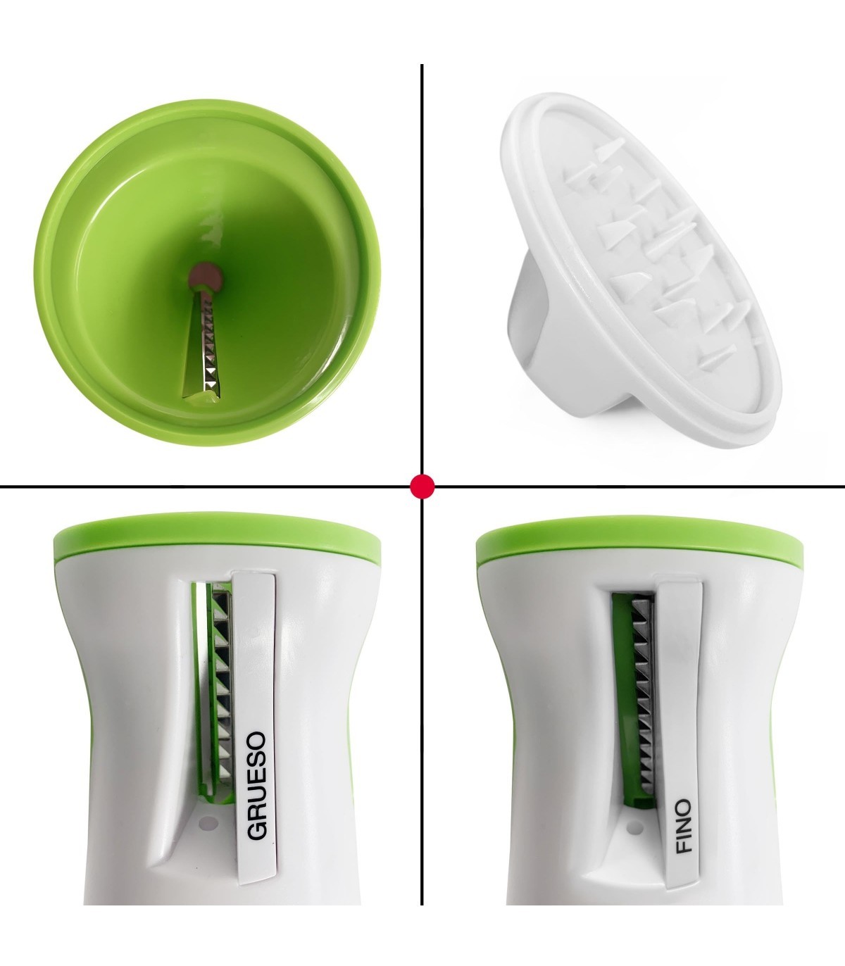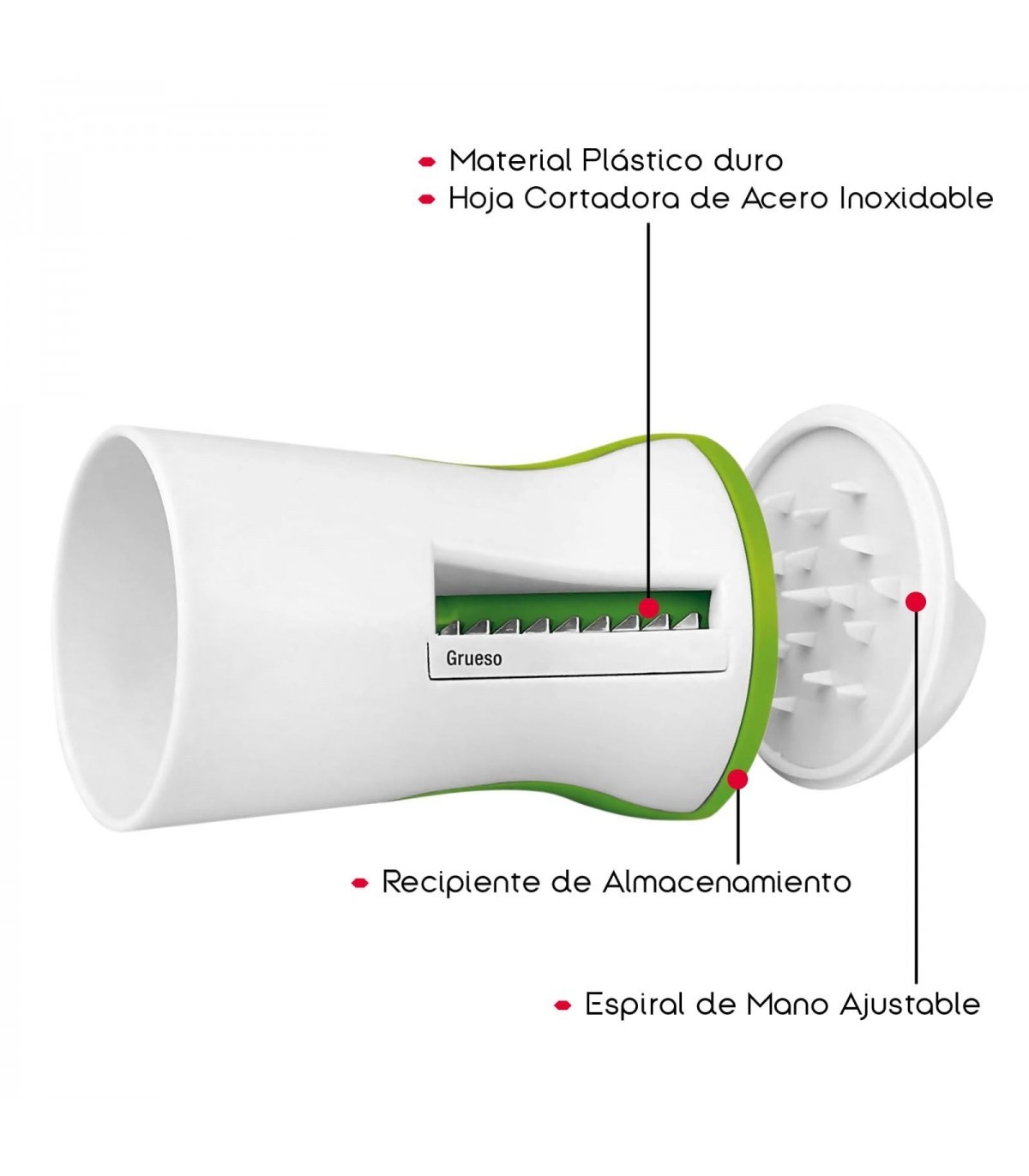 Diseñado en un atractivo blanco y verde, este cortador de verduras es tanto práctico como estilizado. Fabricado con material plástico duradero, garantiza resistencia y facilidad de uso. Las cuchillas de acero inoxidable ofrecen un rendimiento duradero, asegurando que cada corte sea preciso y eficiente.