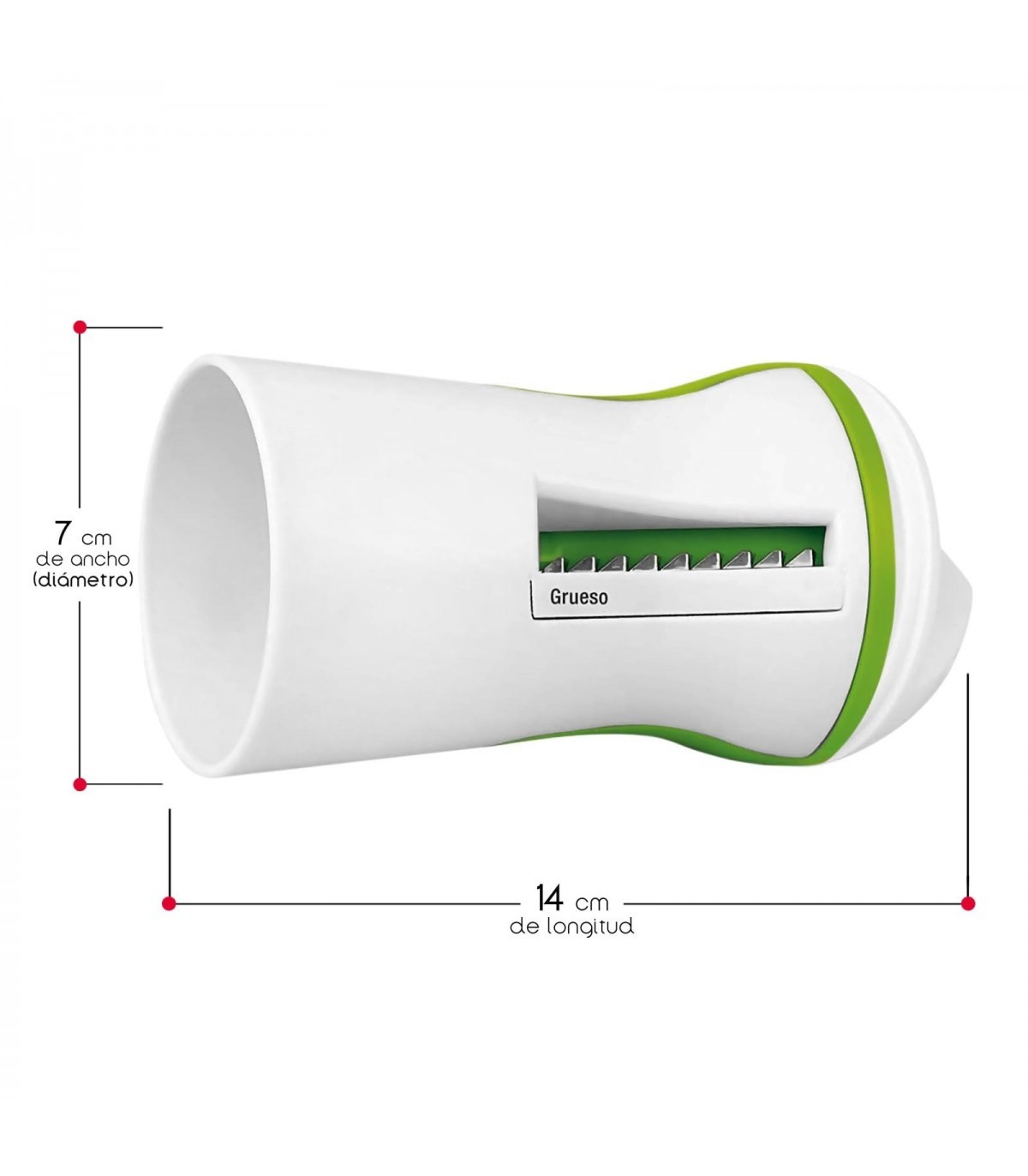 Explora nuevas posibilidades culinarias con nuestro cortador de verduras en tiras, un accesorio manual versátil que te permite crear dos tipos de espaguetis y cintas con facilidad. Con tres medidas de cortes a tu disposición, este ingenioso cortador proporciona opciones de corte fino de 3 mm, corte grueso de 5 mm y corte en cintas, brindándote la flexibilidad necesaria para experimentar en la cocina.