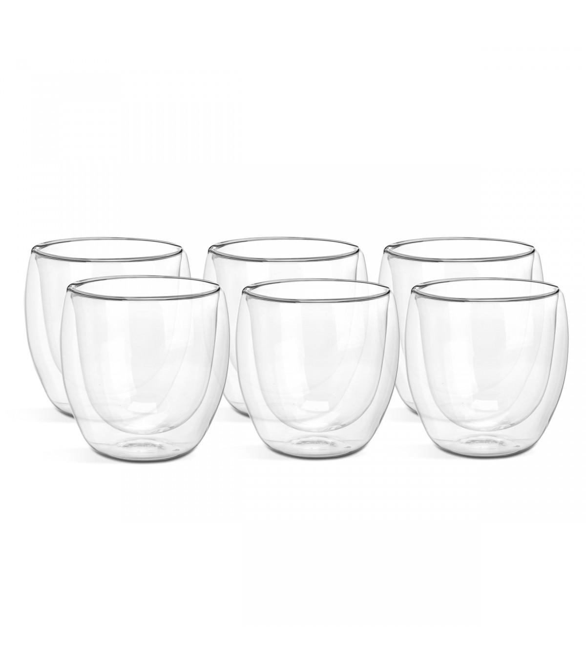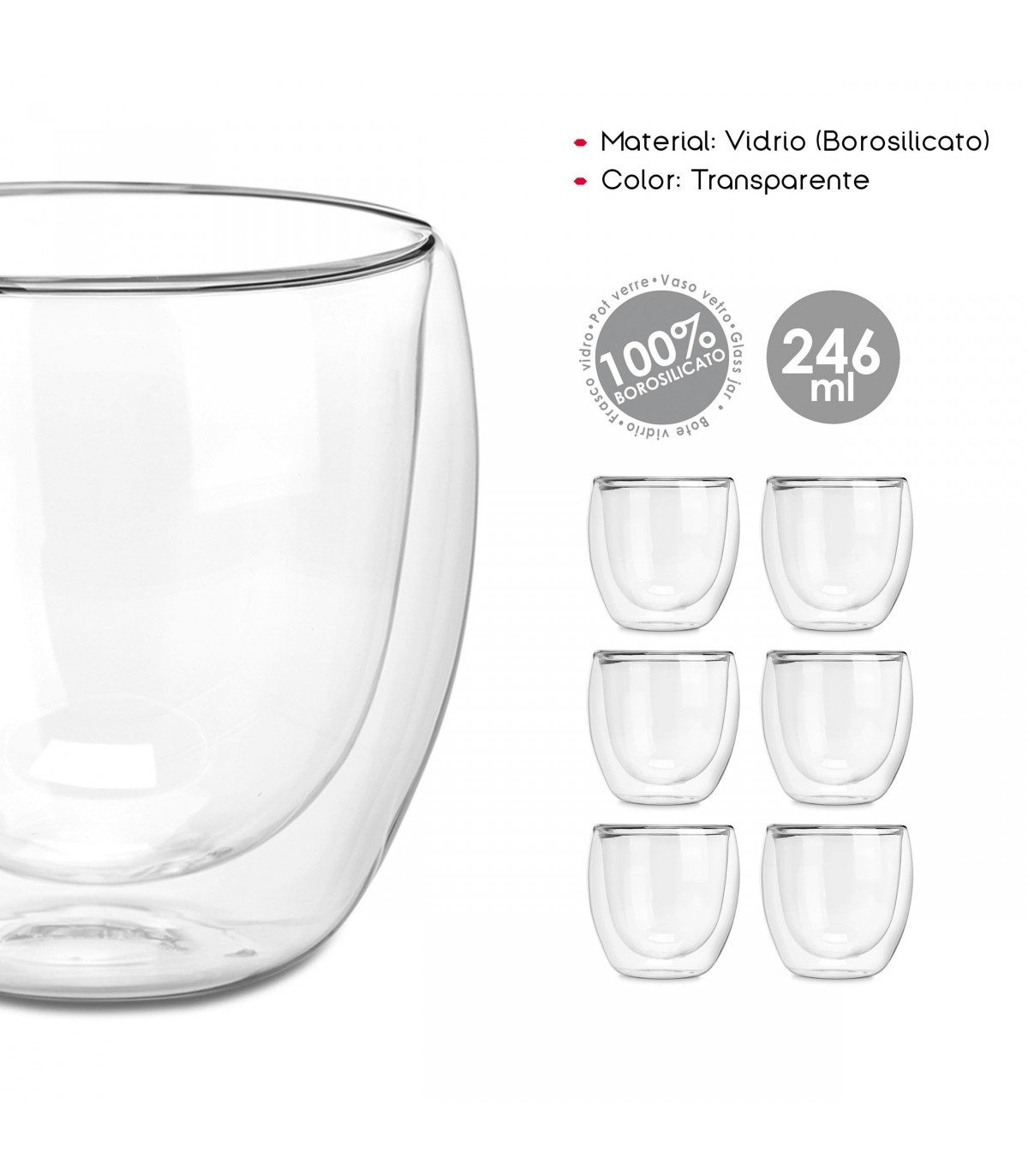 Pack de 6 Vasos Borosicalate, Doble Capa, Cristal, Transparente (246 ml)